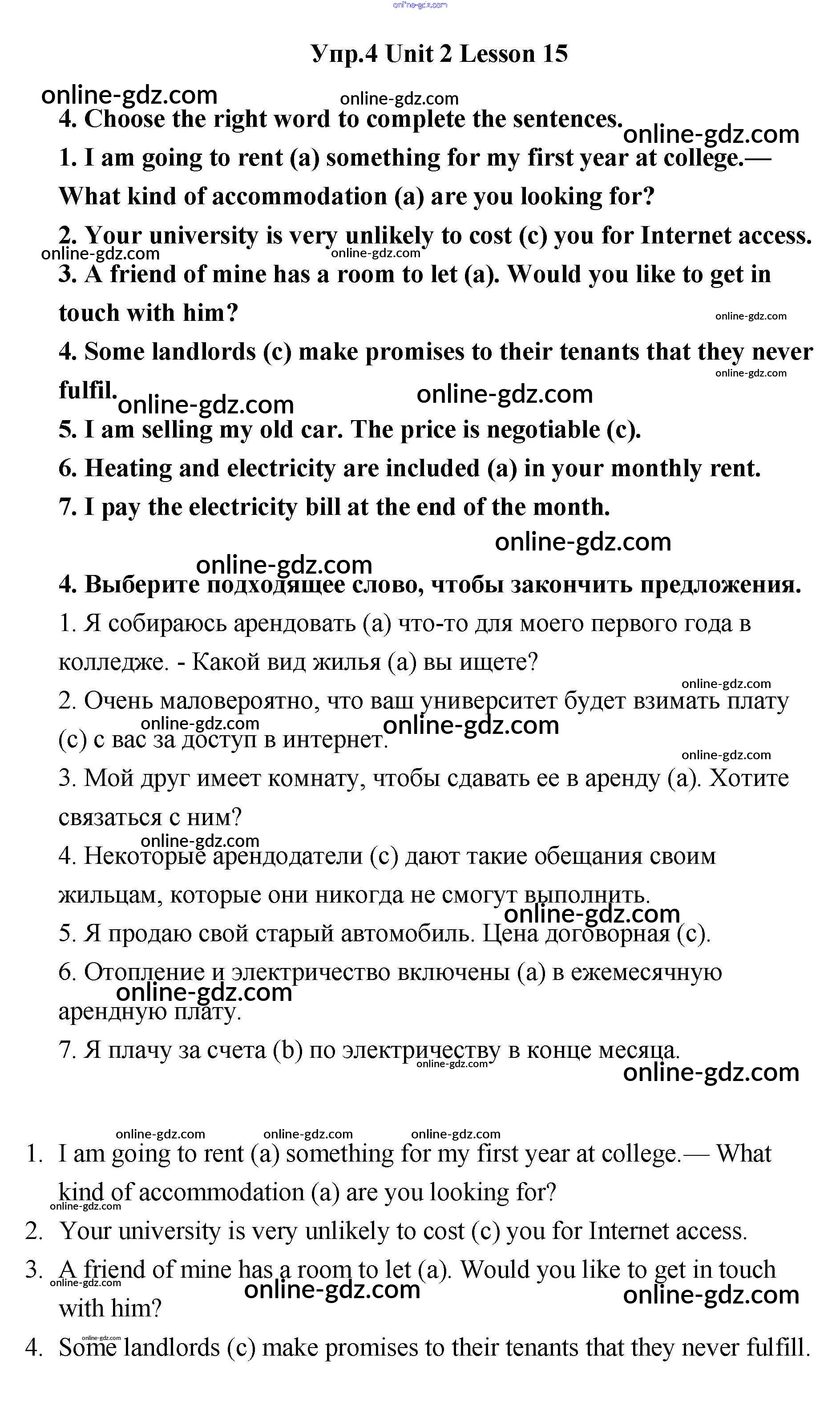 Готовые домашние задания по Английскому языку за 11 класс Рабочая тетрадь Кауфман Happy English 2014 - Lesson 15 Unit 2 4
