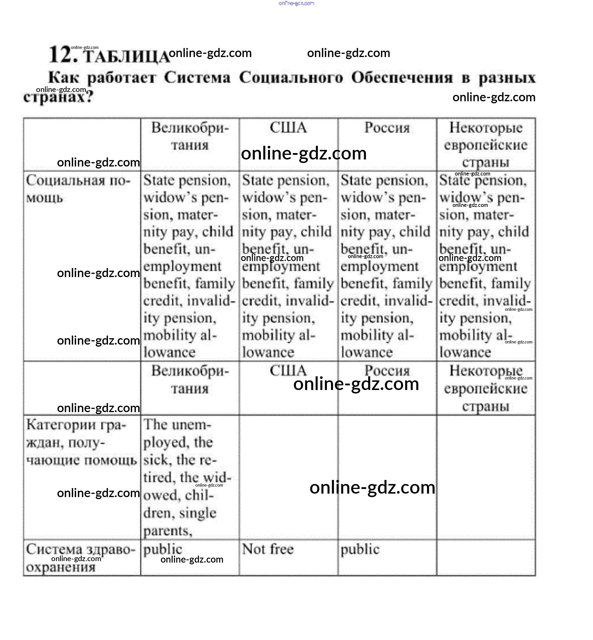 Готовые домашние задания по Английскому языку за 10, 11 класс Рабочая тетрадь Кузовлев, Лапа УМК 2012 - Unit 5. Is the System of Social Welfare Fair? 12