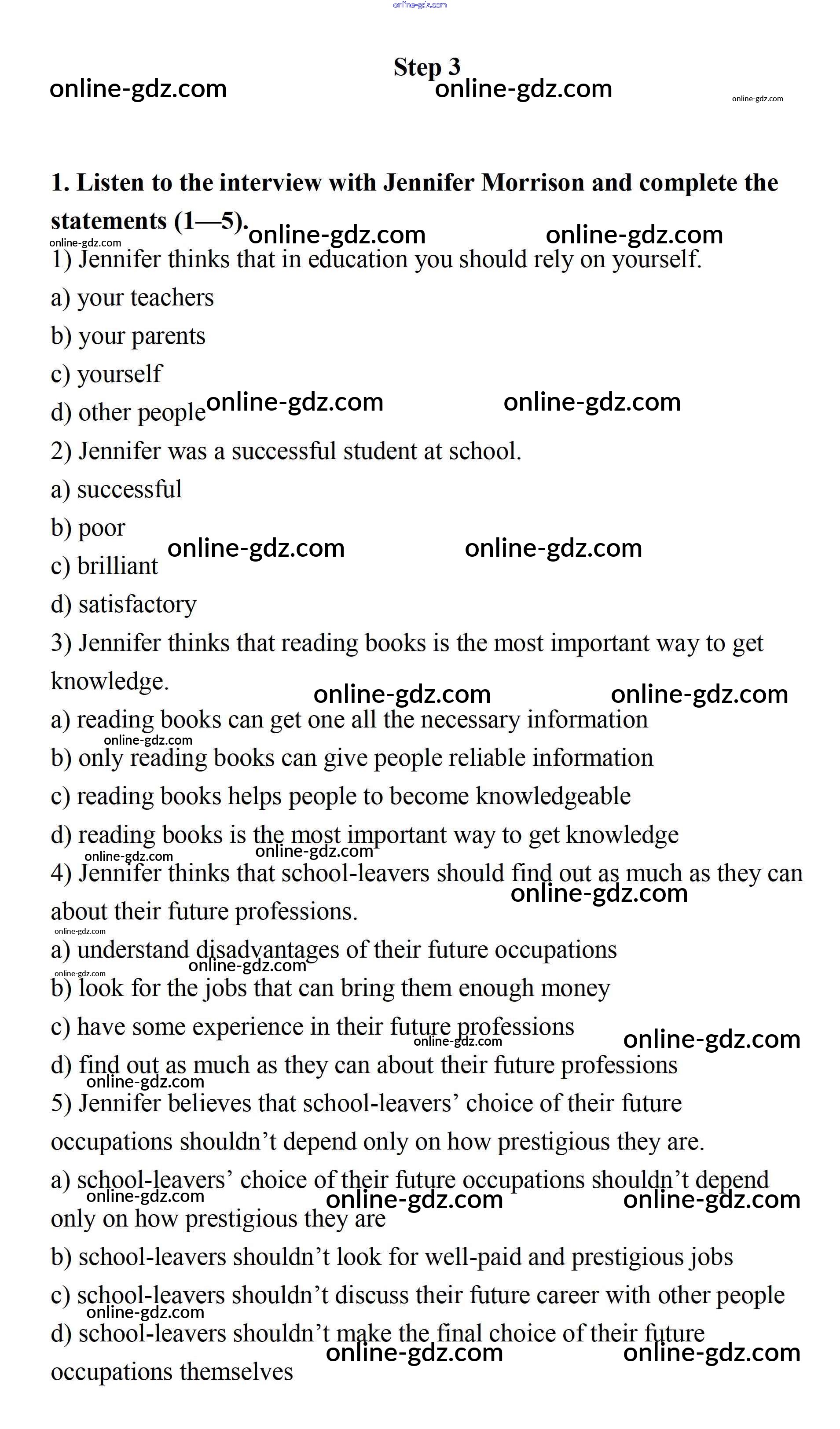 Готовые домашние задания по Английскому языку за 11 класс Учебник Афанасьева, Михеева Rainbow Базовый уровень 2017 - Step 3 Unit 1. Steps to your career 1