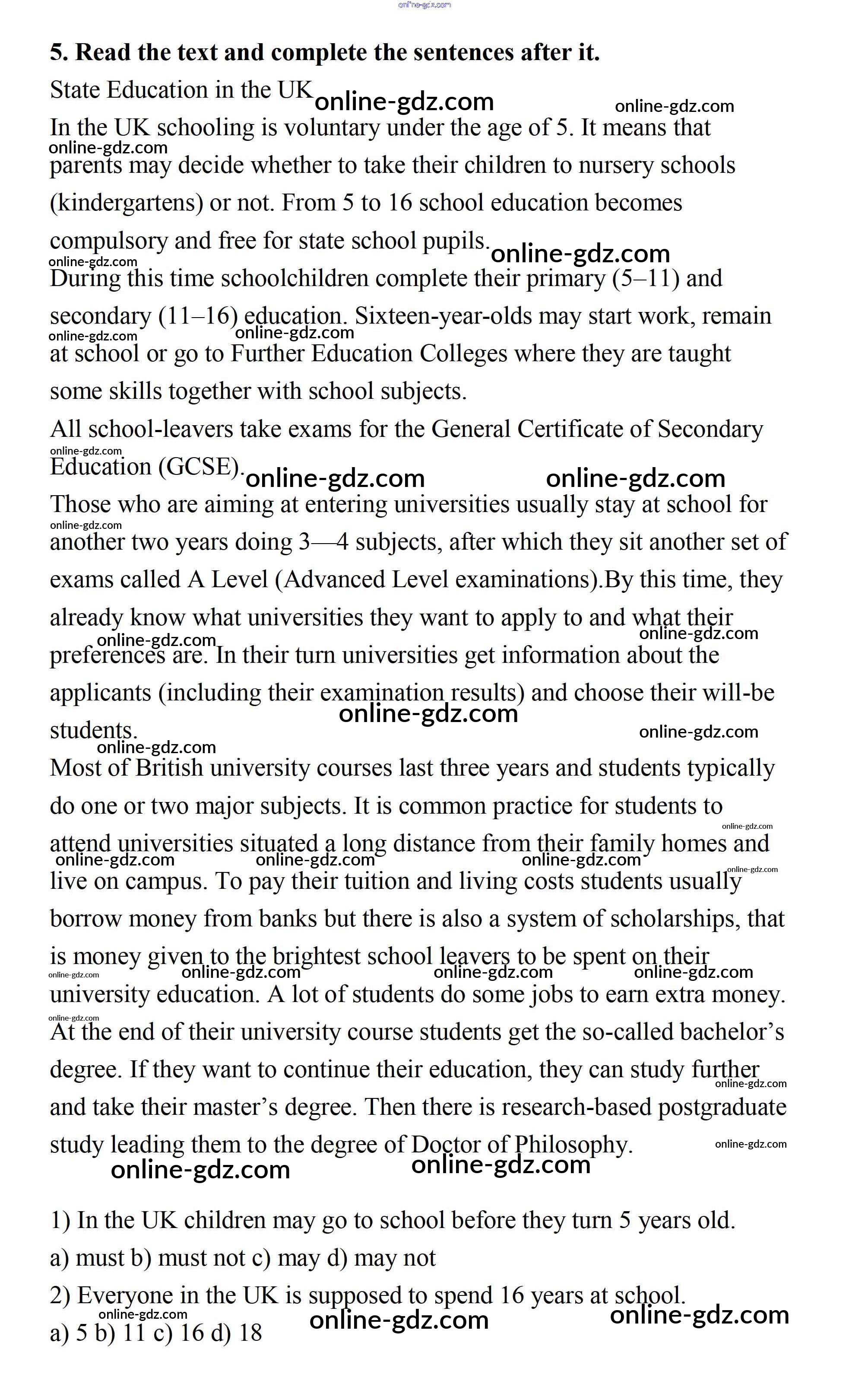 Готовые домашние задания по Английскому языку за 11 класс Учебник Афанасьева, Михеева Rainbow Базовый уровень 2017 - Step 4 Unit 1. Steps to your career 5