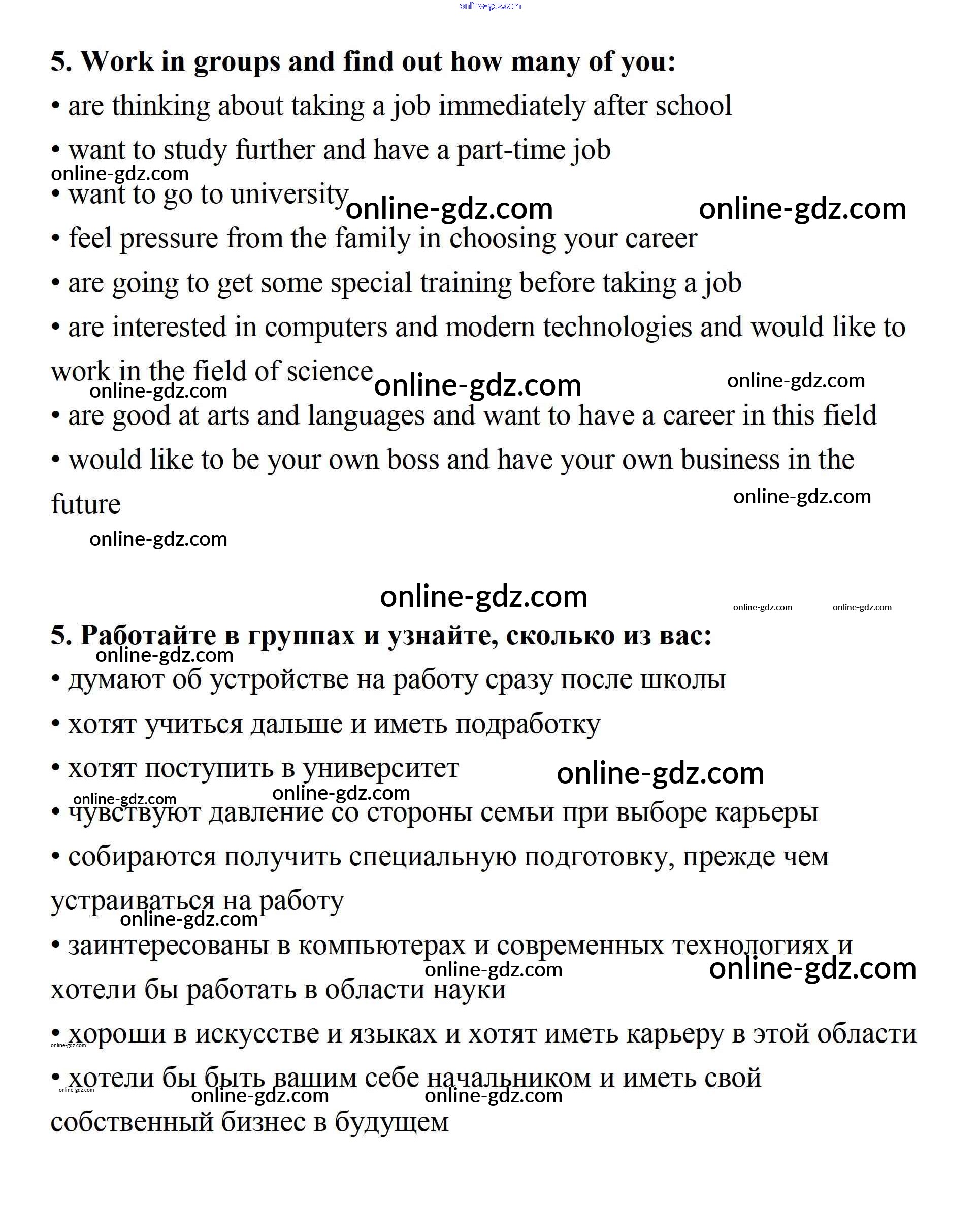 Готовые домашние задания по Английскому языку за 11 класс Учебник Афанасьева, Михеева Rainbow Базовый уровень 2017 - Step 9 Unit 1. Steps to your career 5