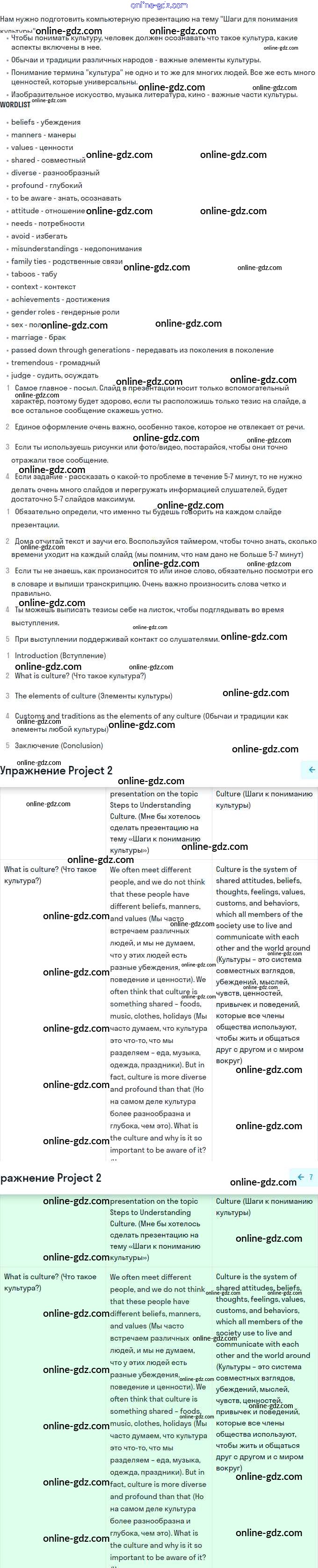 Готовые домашние задания по Английскому языку за 11 класс Учебник Афанасьева, Михеева Rainbow Базовый уровень 2017 - Step 10 Unit 2. Steps to Understanding culture Project