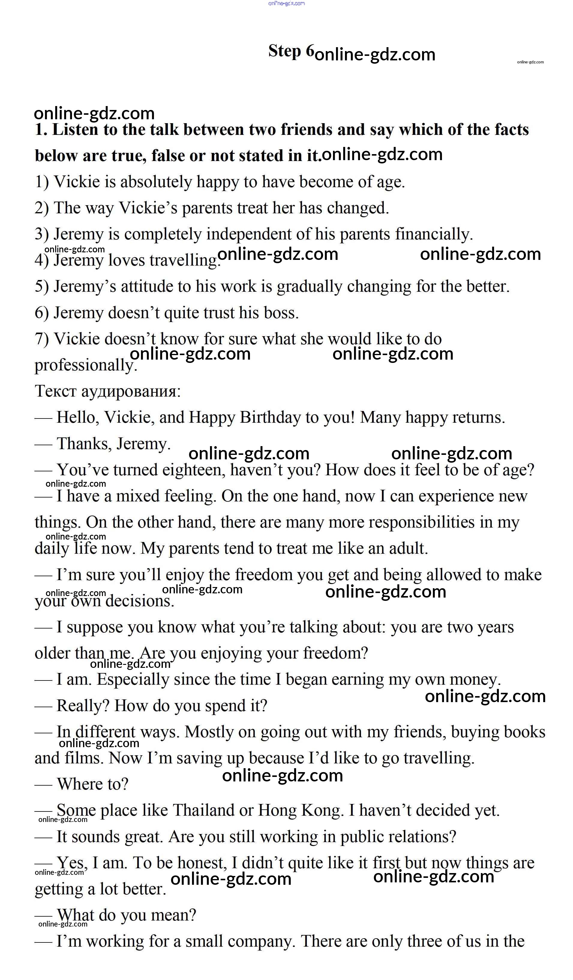 Готовые домашние задания по Английскому языку за 11 класс Учебник Афанасьева, Михеева Rainbow Базовый уровень 2017 - Step 6 Unit 4. Steps to the future 1