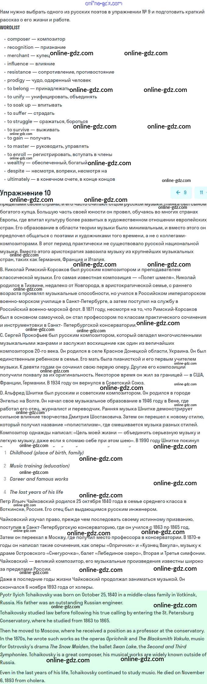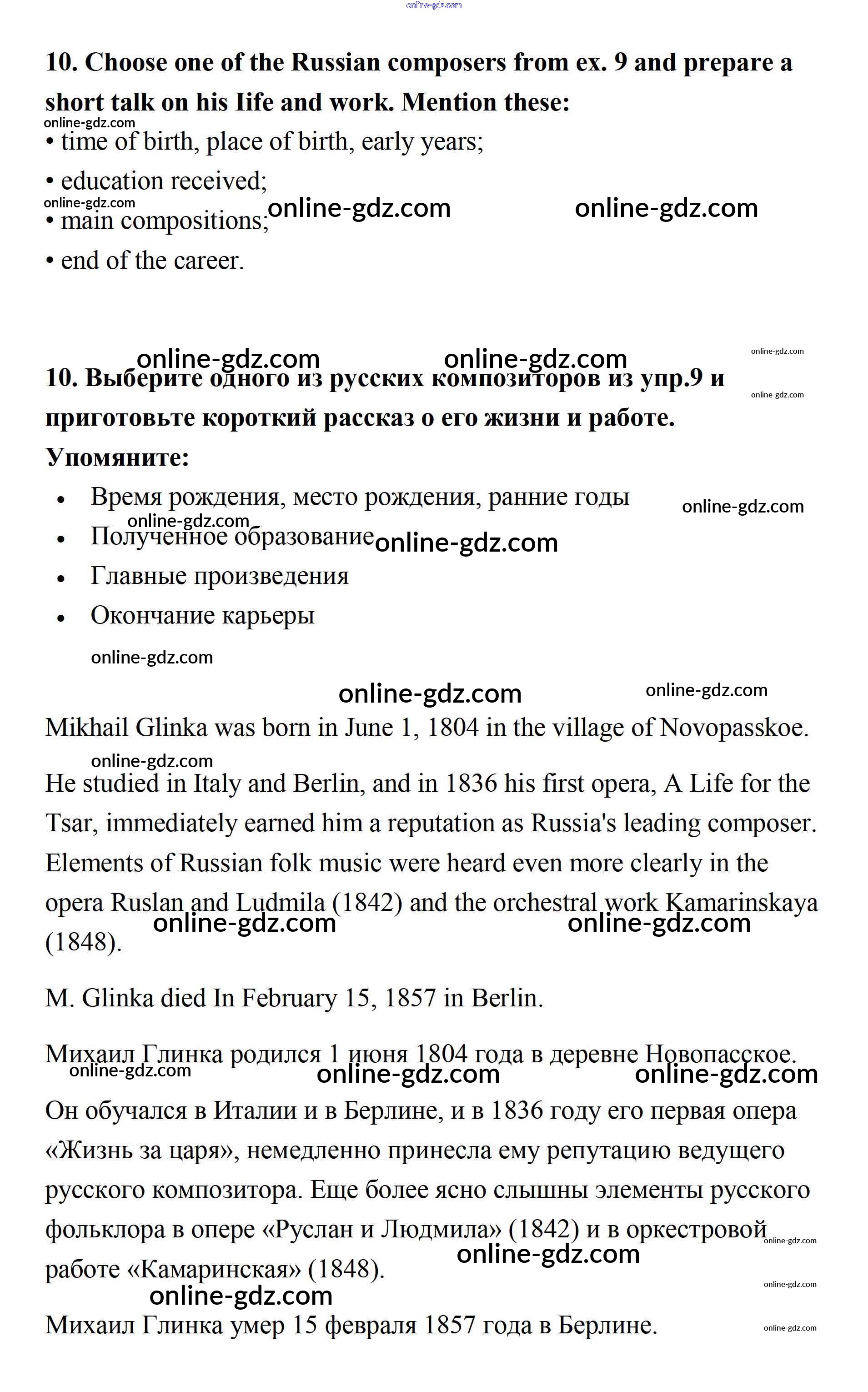 Готовые домашние задания по Английскому языку за 11 класс Учебник Афанасьева, Михеева Углубленный уровень 2015 - Unit 1. Sounds of Music 10