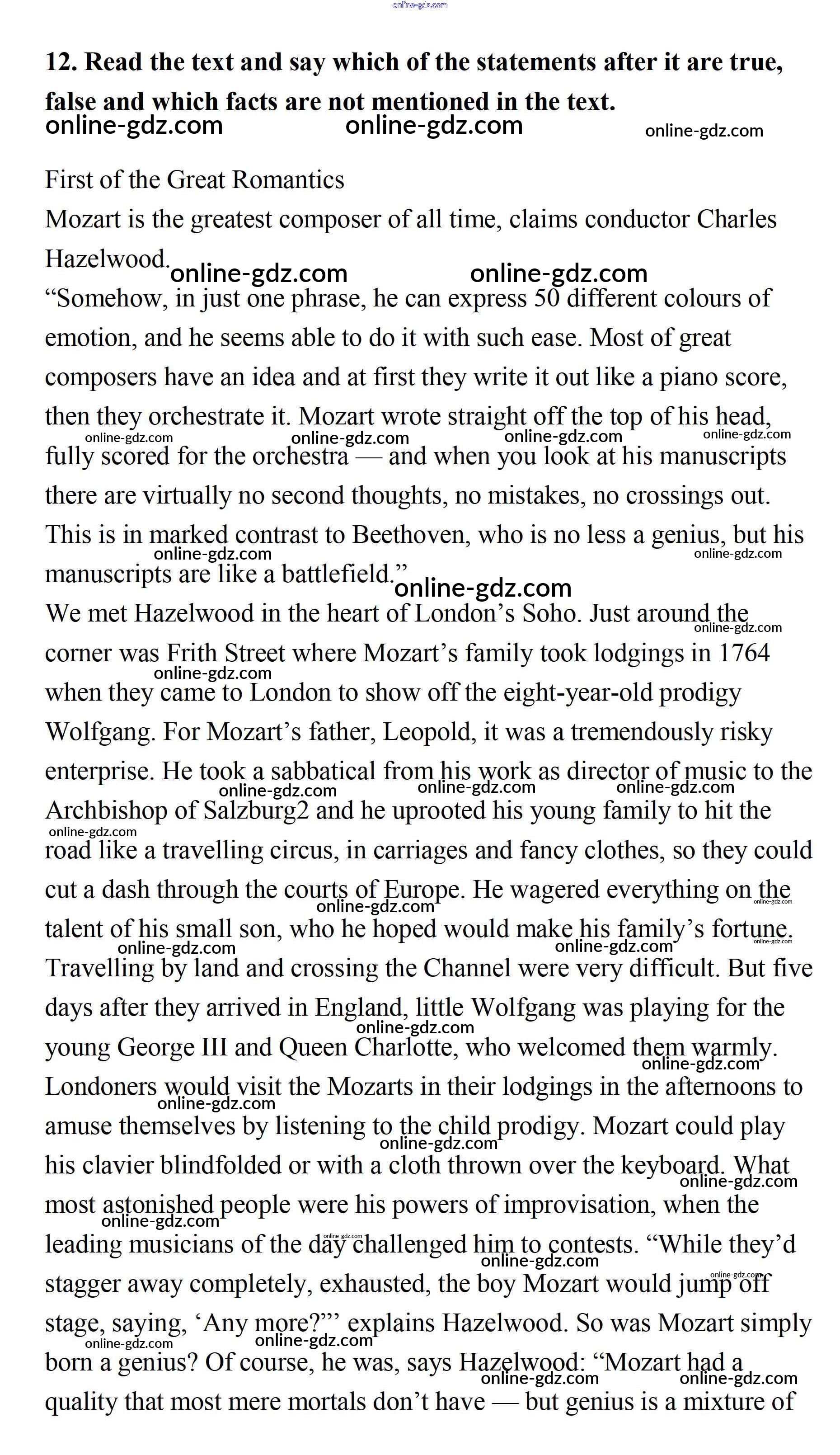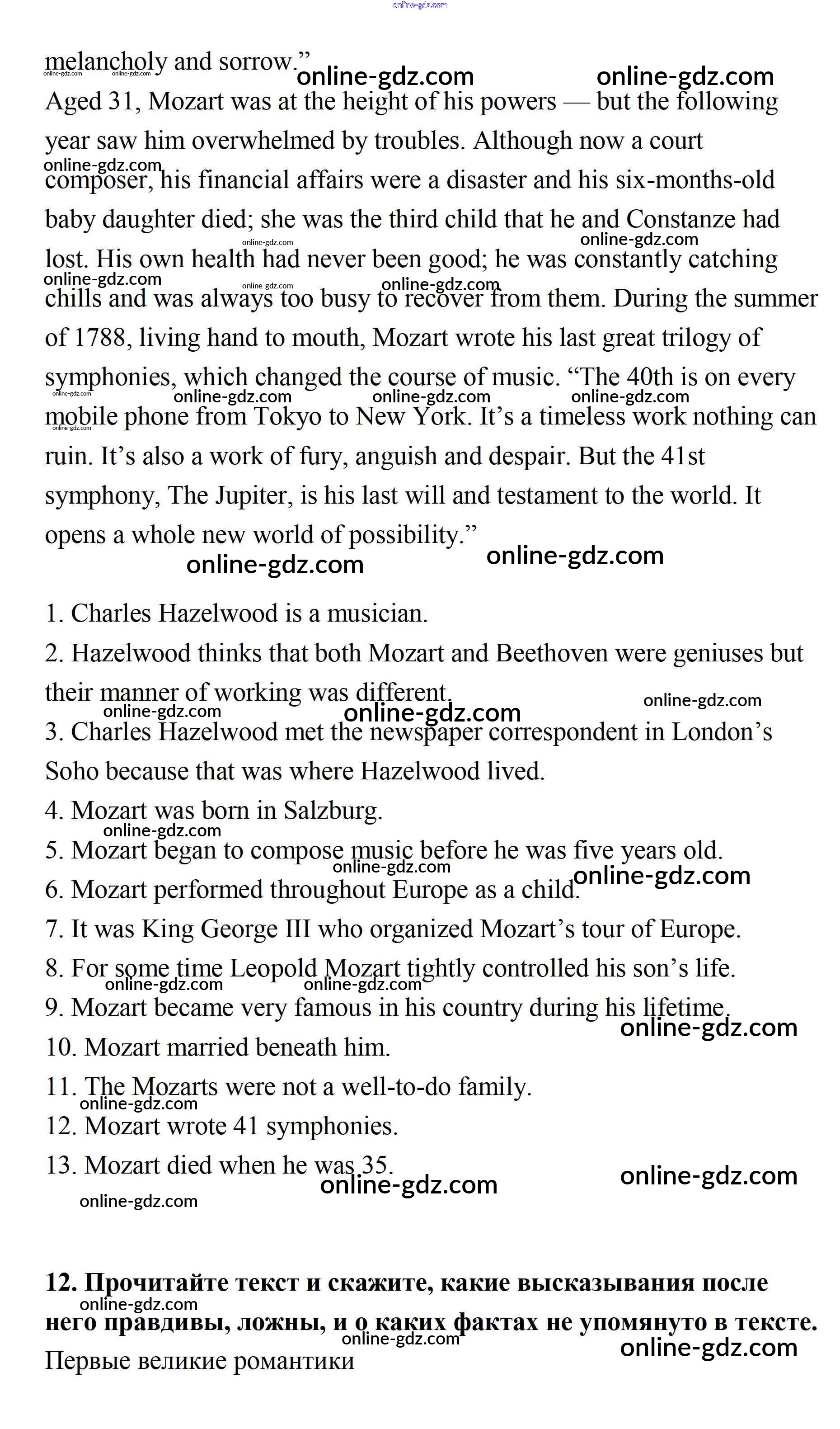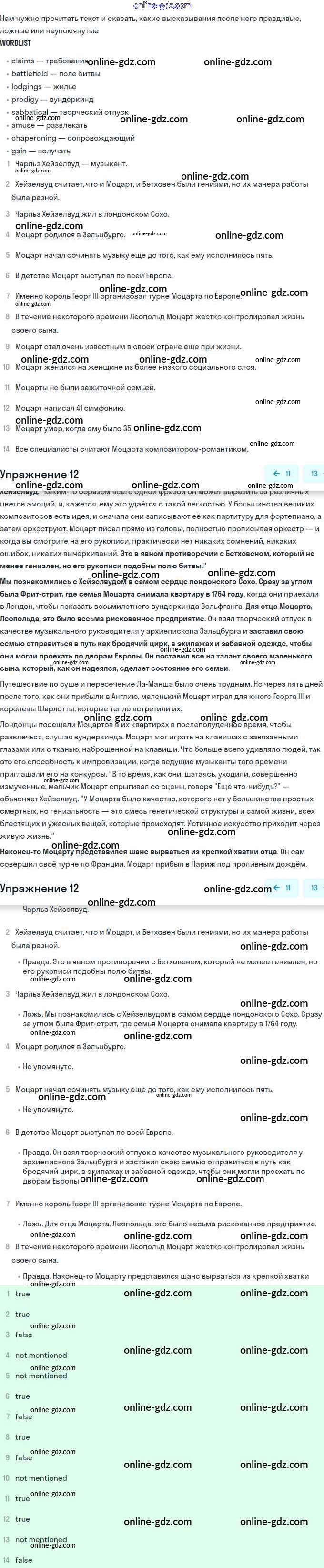 Готовые домашние задания по Английскому языку за 11 класс Учебник Афанасьева, Михеева Углубленный уровень 2015 - Unit 1. Sounds of Music 12