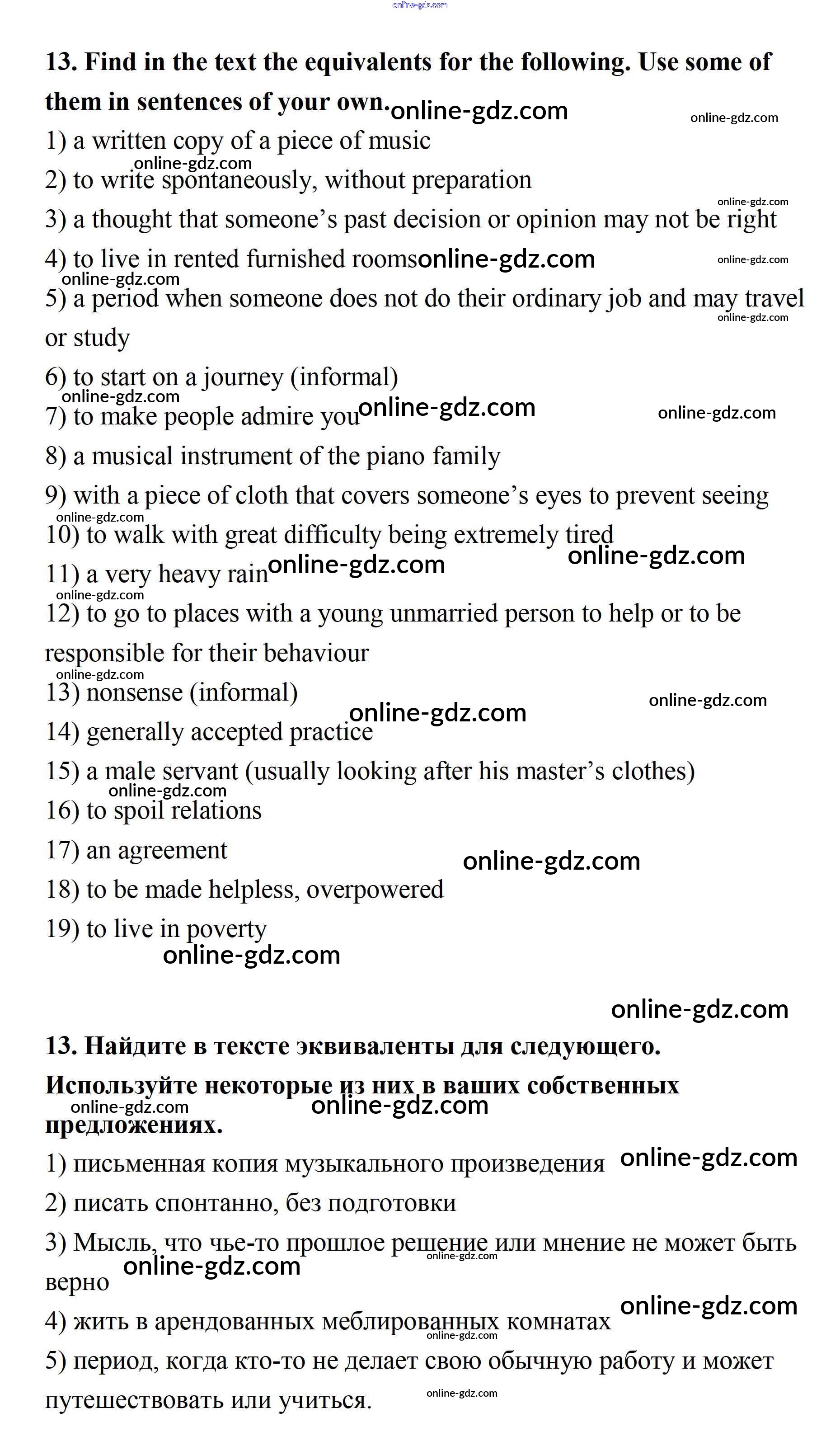 Готовые домашние задания по Английскому языку за 11 класс Учебник Афанасьева, Михеева Углубленный уровень 2015 - Unit 1. Sounds of Music 13