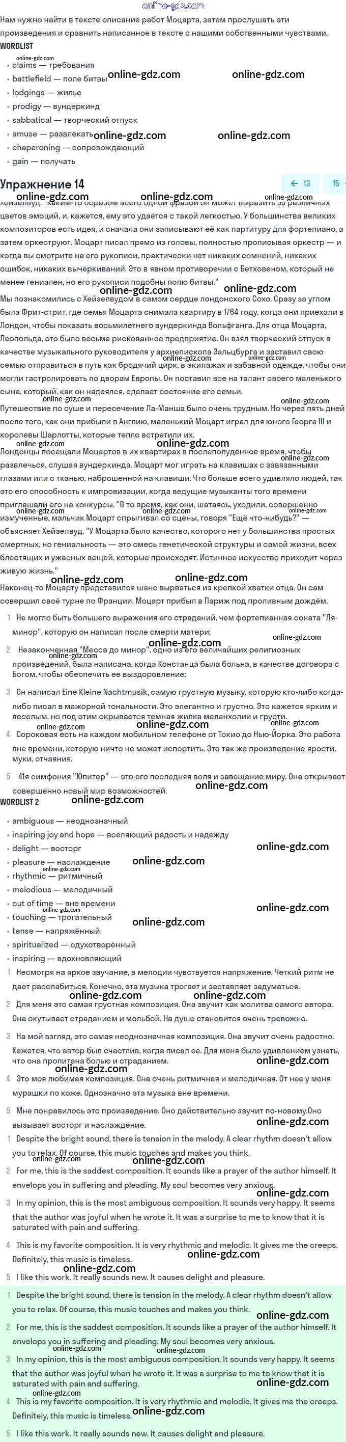 Готовые домашние задания по Английскому языку за 11 класс Учебник Афанасьева, Михеева Углубленный уровень 2015 - Unit 1. Sounds of Music 14