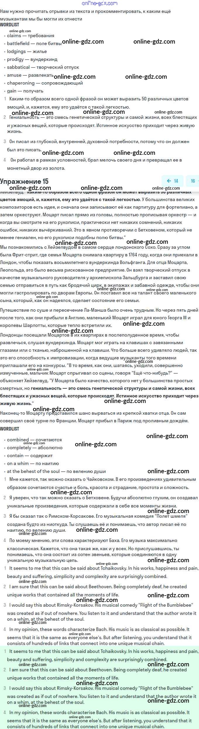 Готовые домашние задания по Английскому языку за 11 класс Учебник Афанасьева, Михеева Углубленный уровень 2015 - Unit 1. Sounds of Music 15