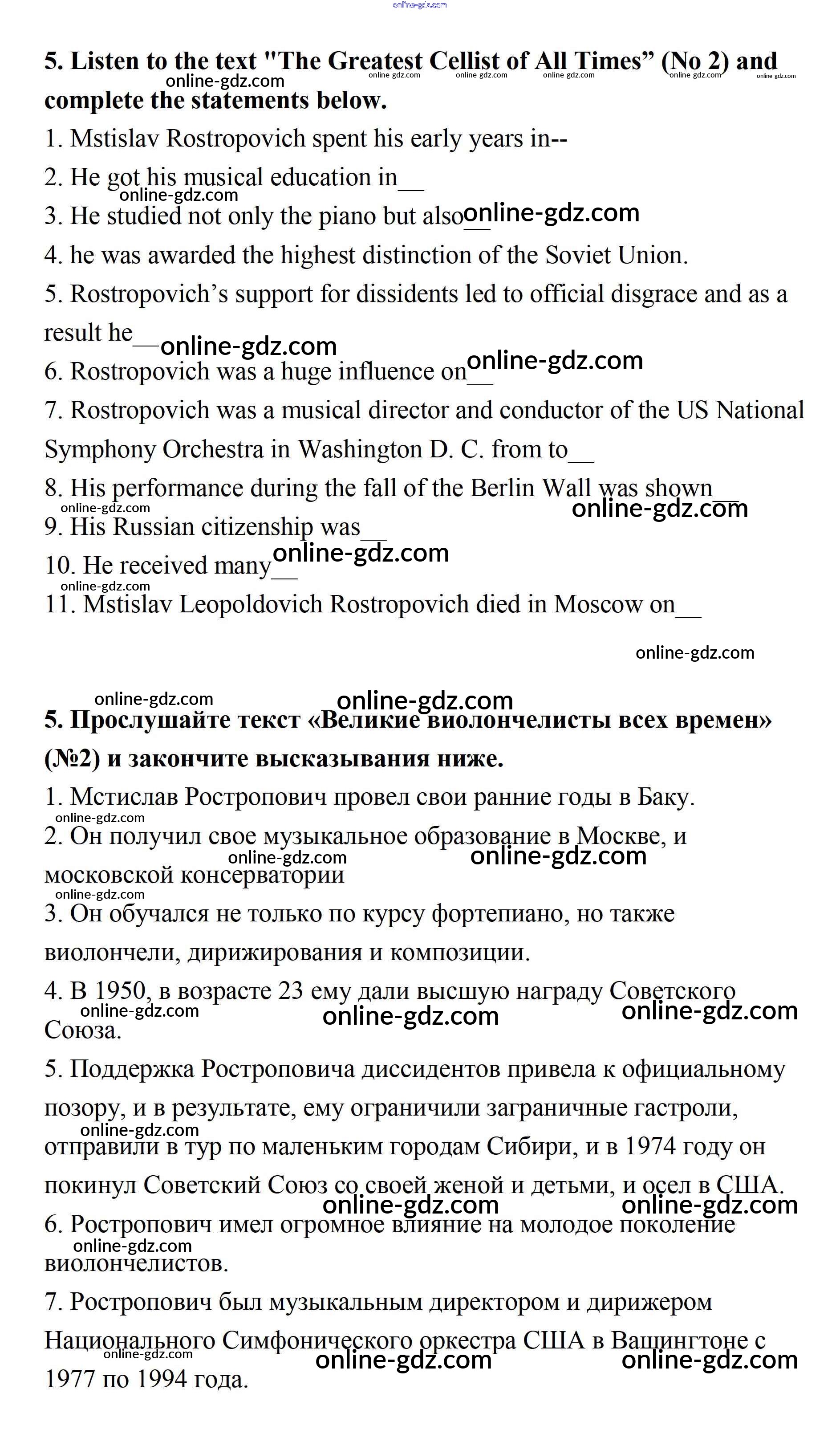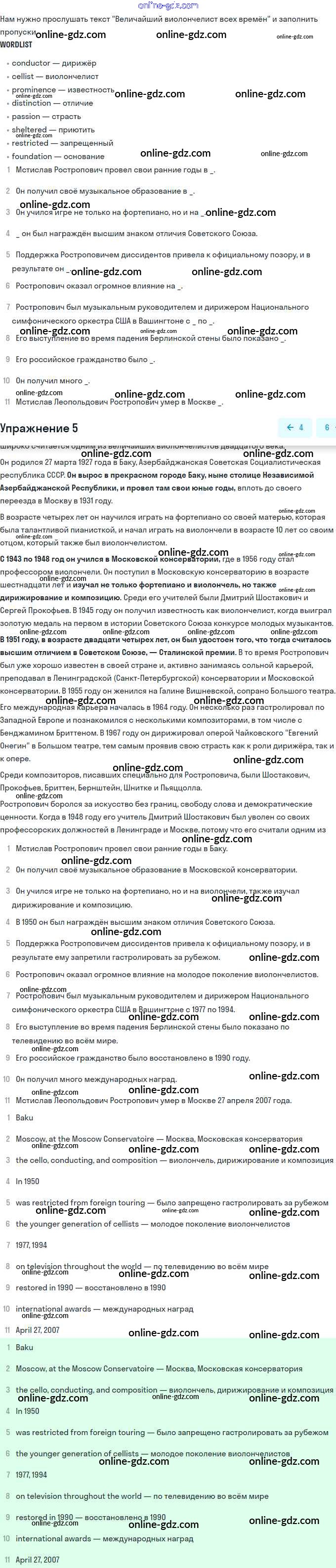 Готовые домашние задания по Английскому языку за 11 класс Учебник Афанасьева, Михеева Углубленный уровень 2015 - Unit 1. Sounds of Music 5