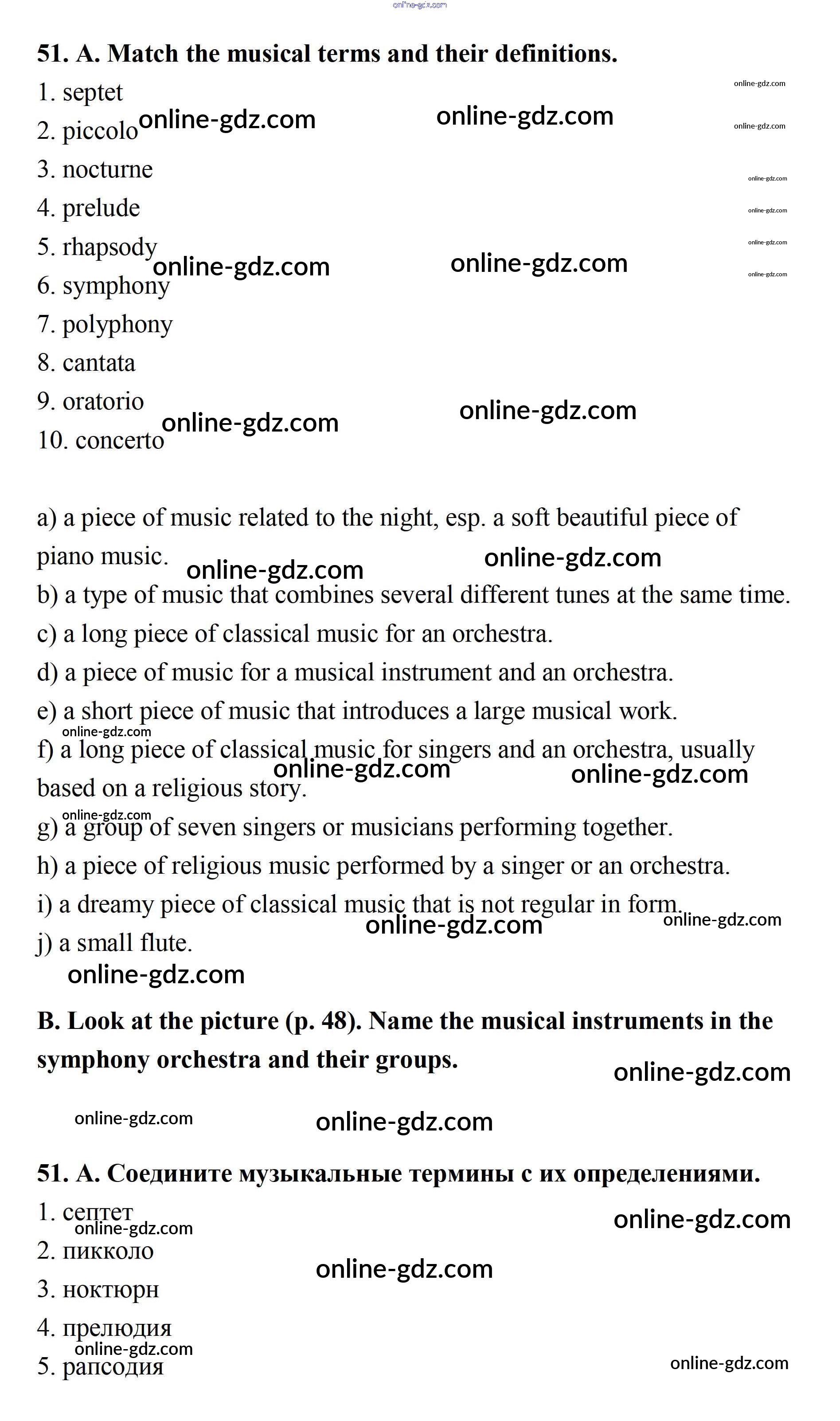 Готовые домашние задания по Английскому языку за 11 класс Учебник Афанасьева, Михеева Углубленный уровень 2015 - Unit 1. Sounds of Music 51