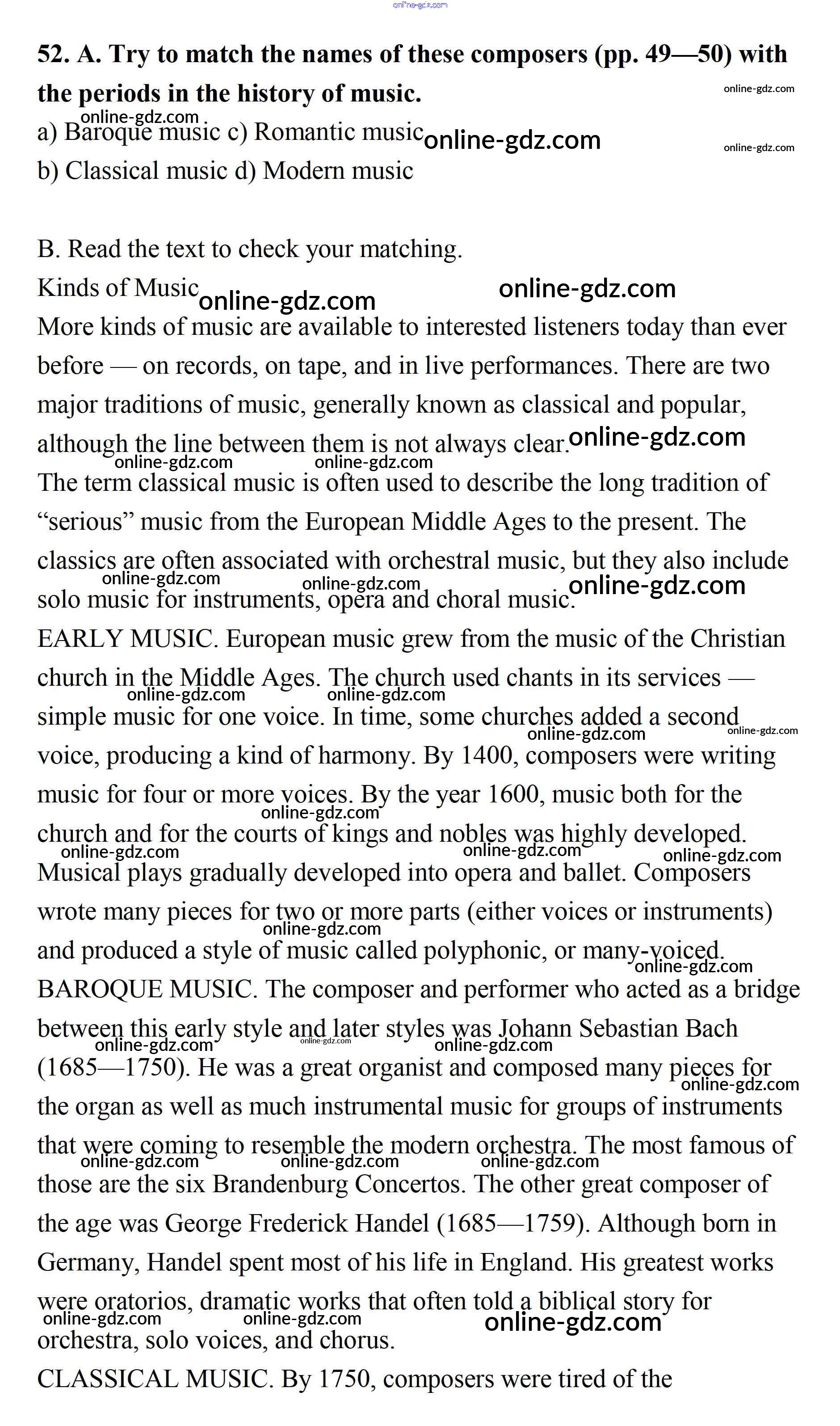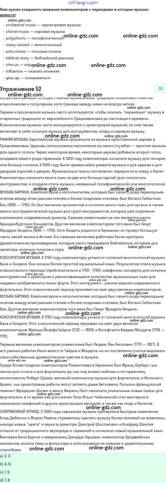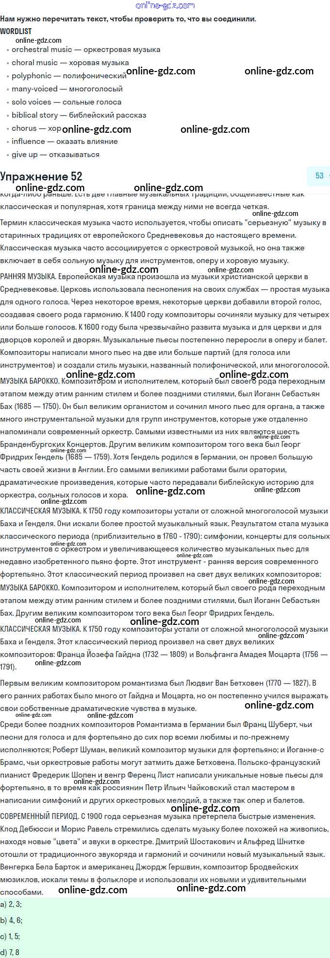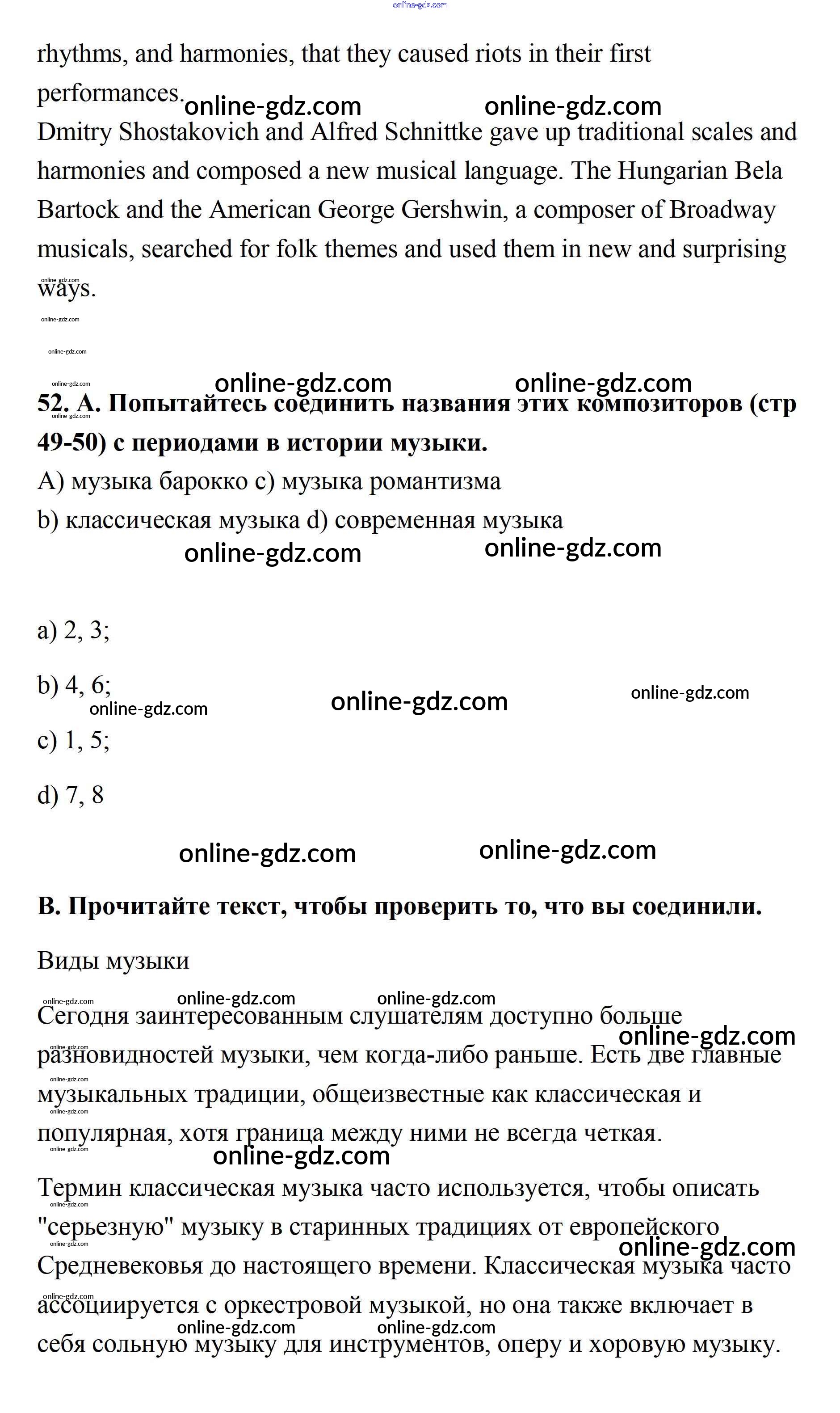 Готовые домашние задания по Английскому языку за 11 класс Учебник Афанасьева, Михеева Углубленный уровень 2015 - Unit 1. Sounds of Music 52