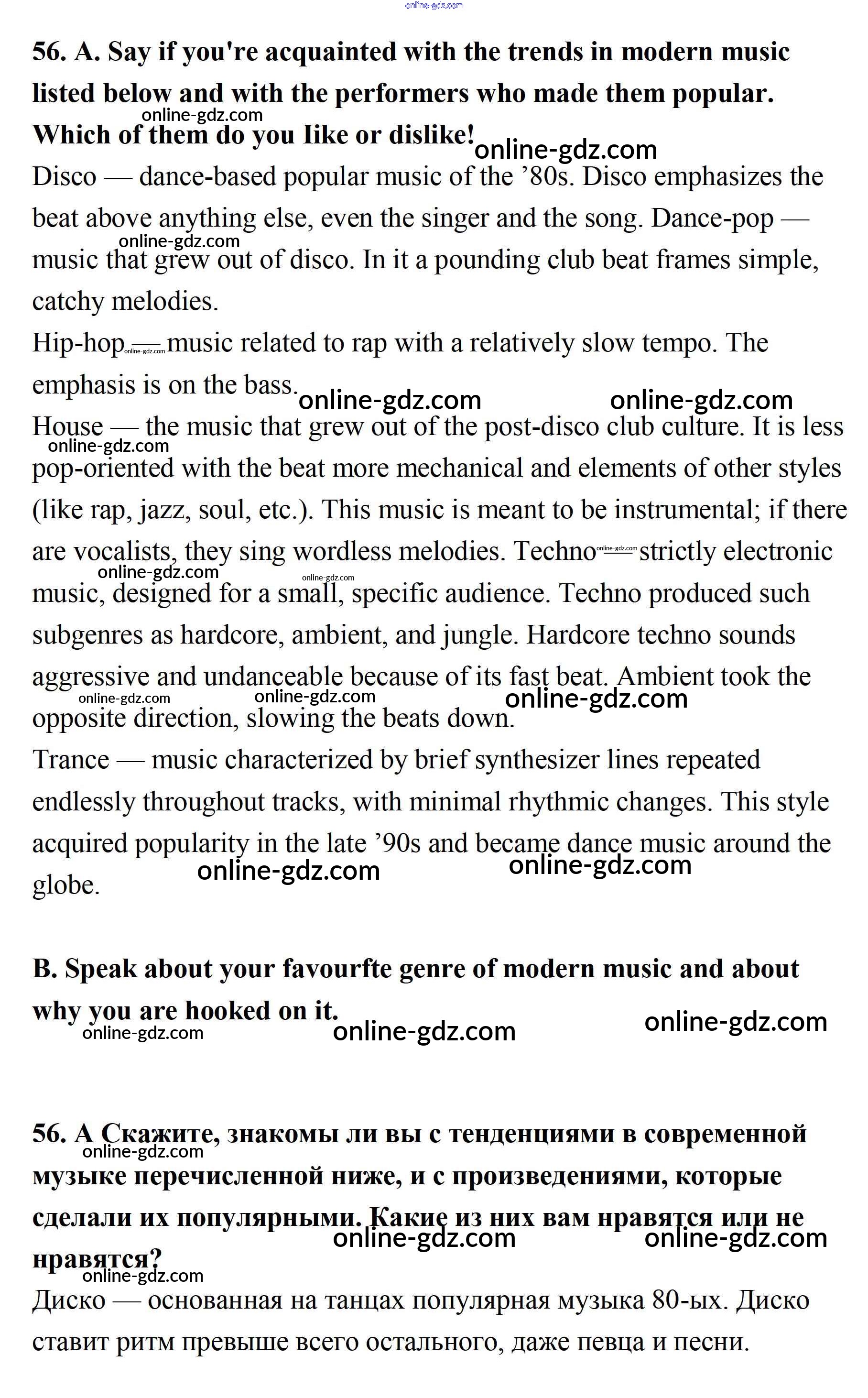 Готовые домашние задания по Английскому языку за 11 класс Учебник Афанасьева, Михеева Углубленный уровень 2015 - Unit 1. Sounds of Music 56