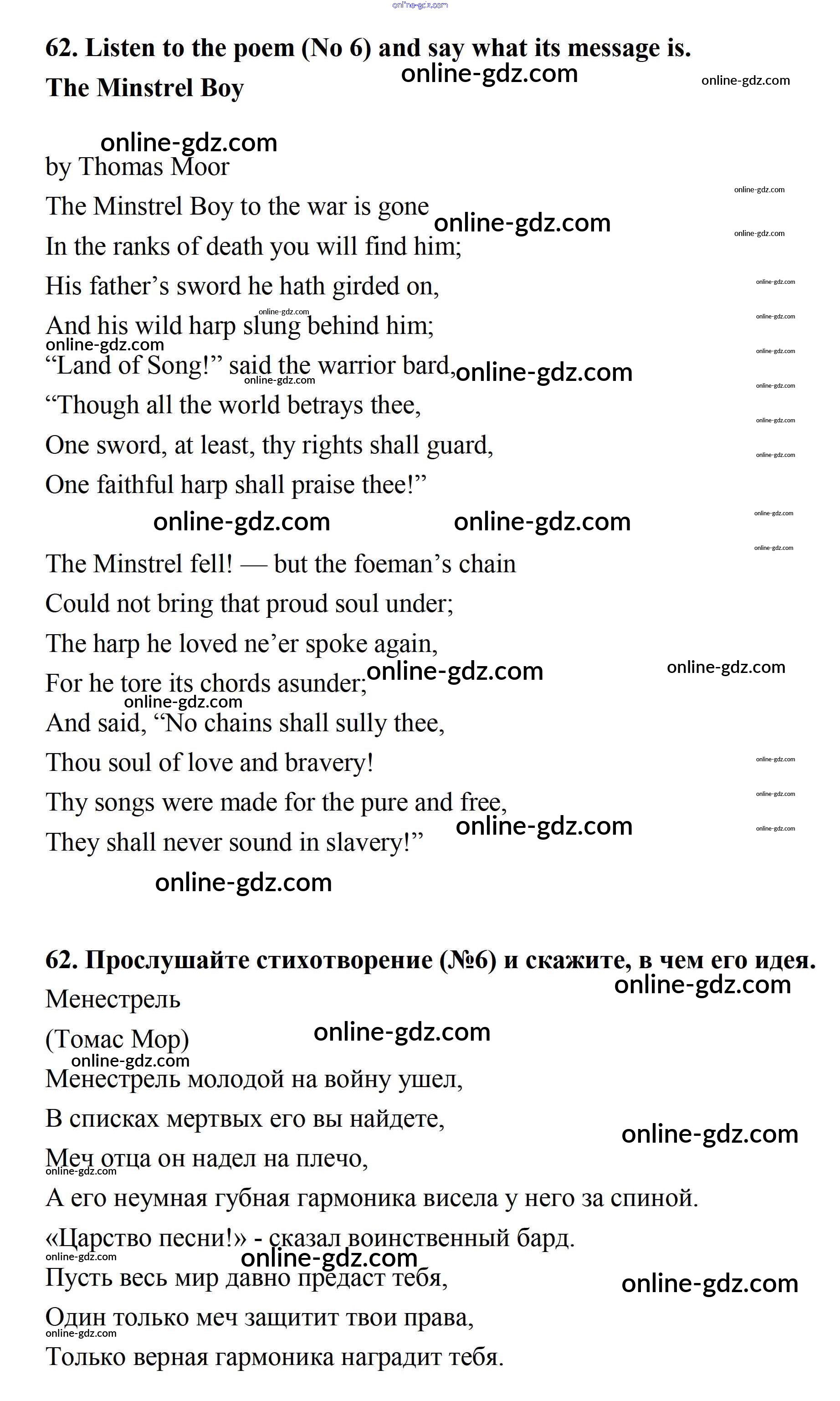 Готовые домашние задания по Английскому языку за 11 класс Учебник Афанасьева, Михеева Углубленный уровень 2015 - Unit 1. Sounds of Music 62