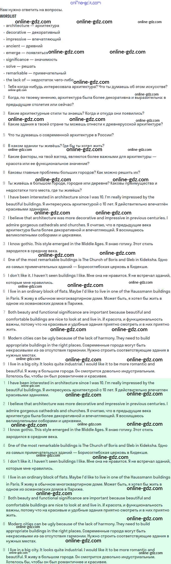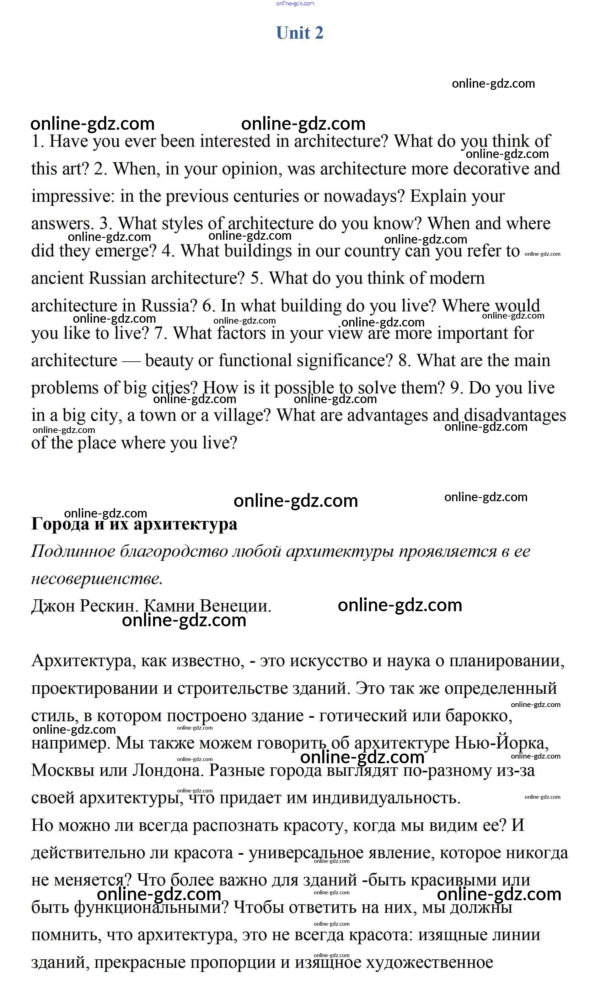 Готовые домашние задания по Английскому языку за 11 класс Учебник Афанасьева, Михеева Углубленный уровень 2015 - Unit 2. Town and Its Architecture 1