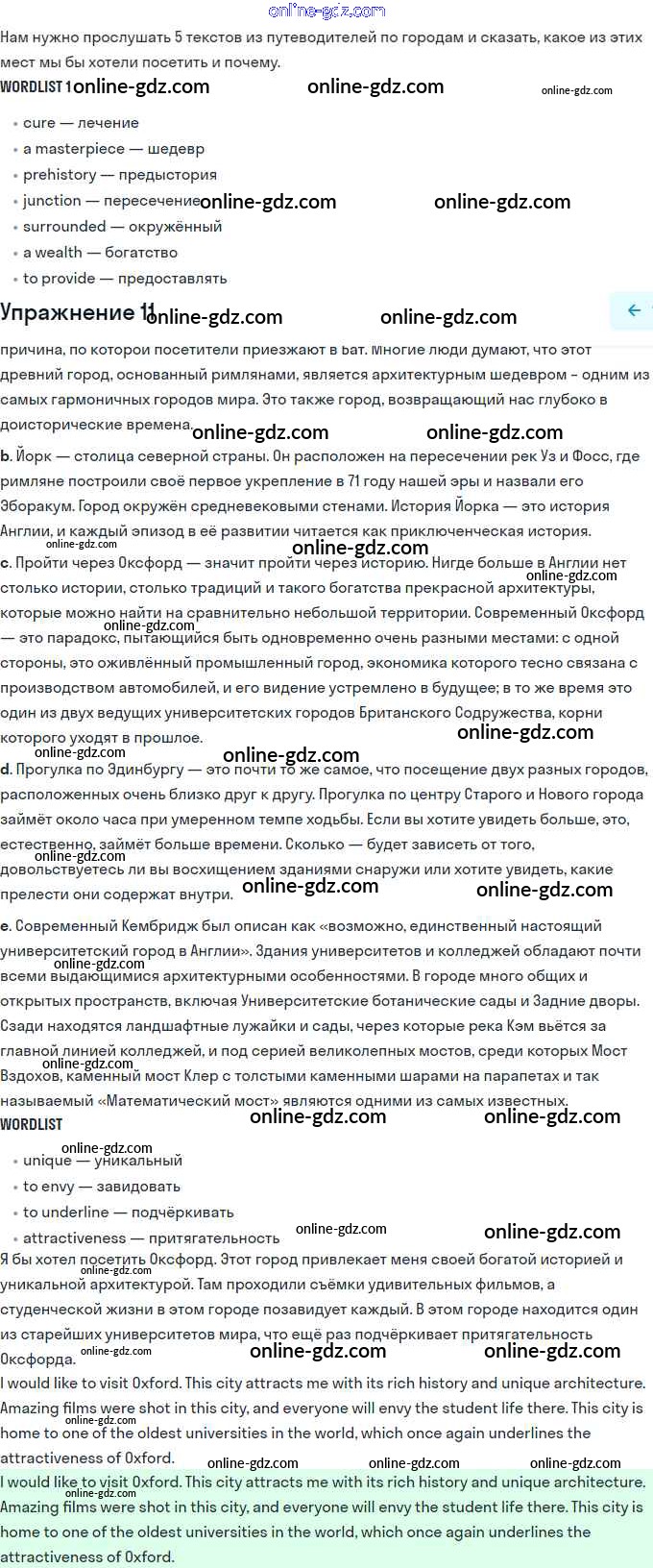 Готовые домашние задания по Английскому языку за 11 класс Учебник Афанасьева, Михеева Углубленный уровень 2015 - Unit 2. Town and Its Architecture 11