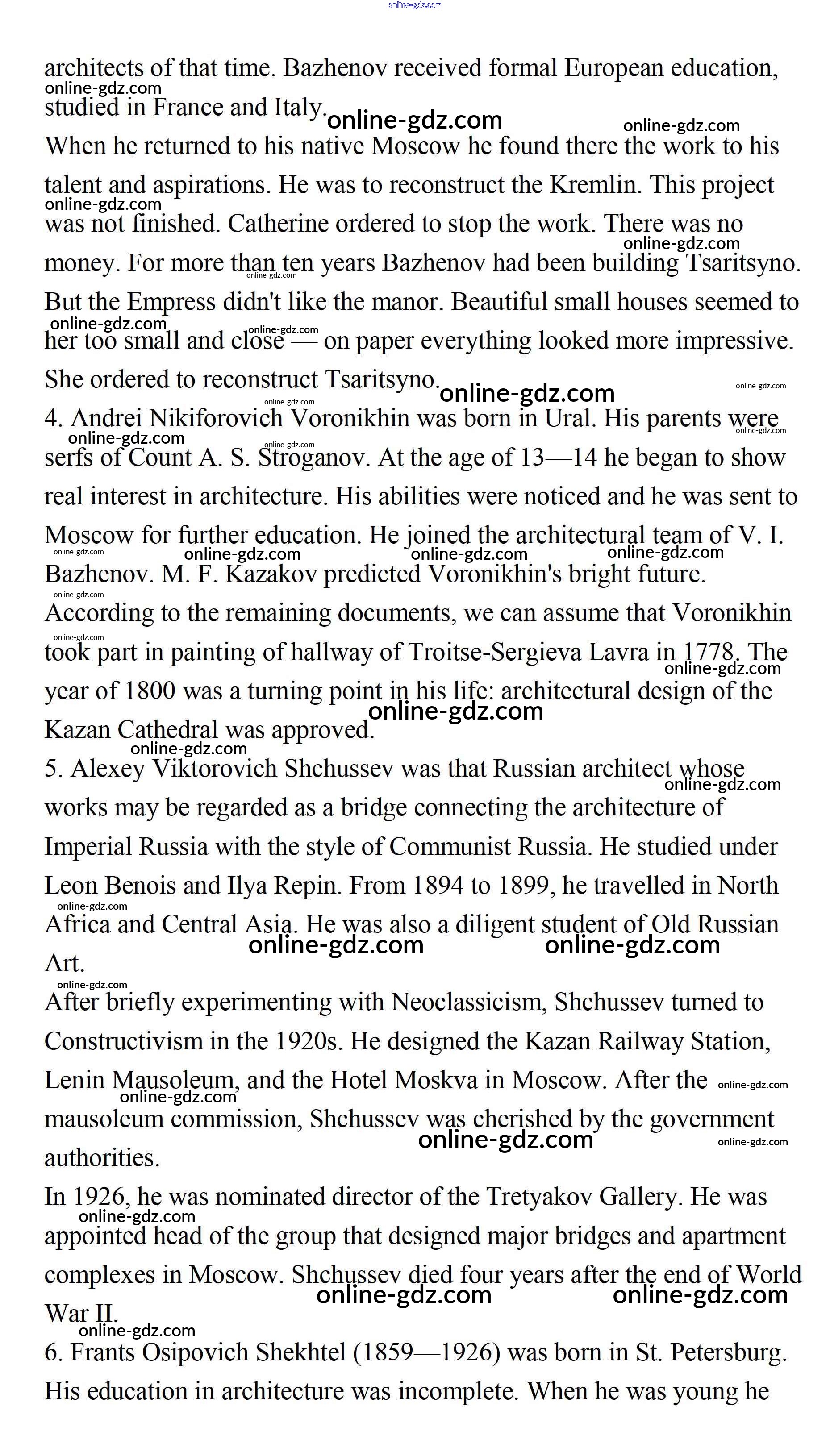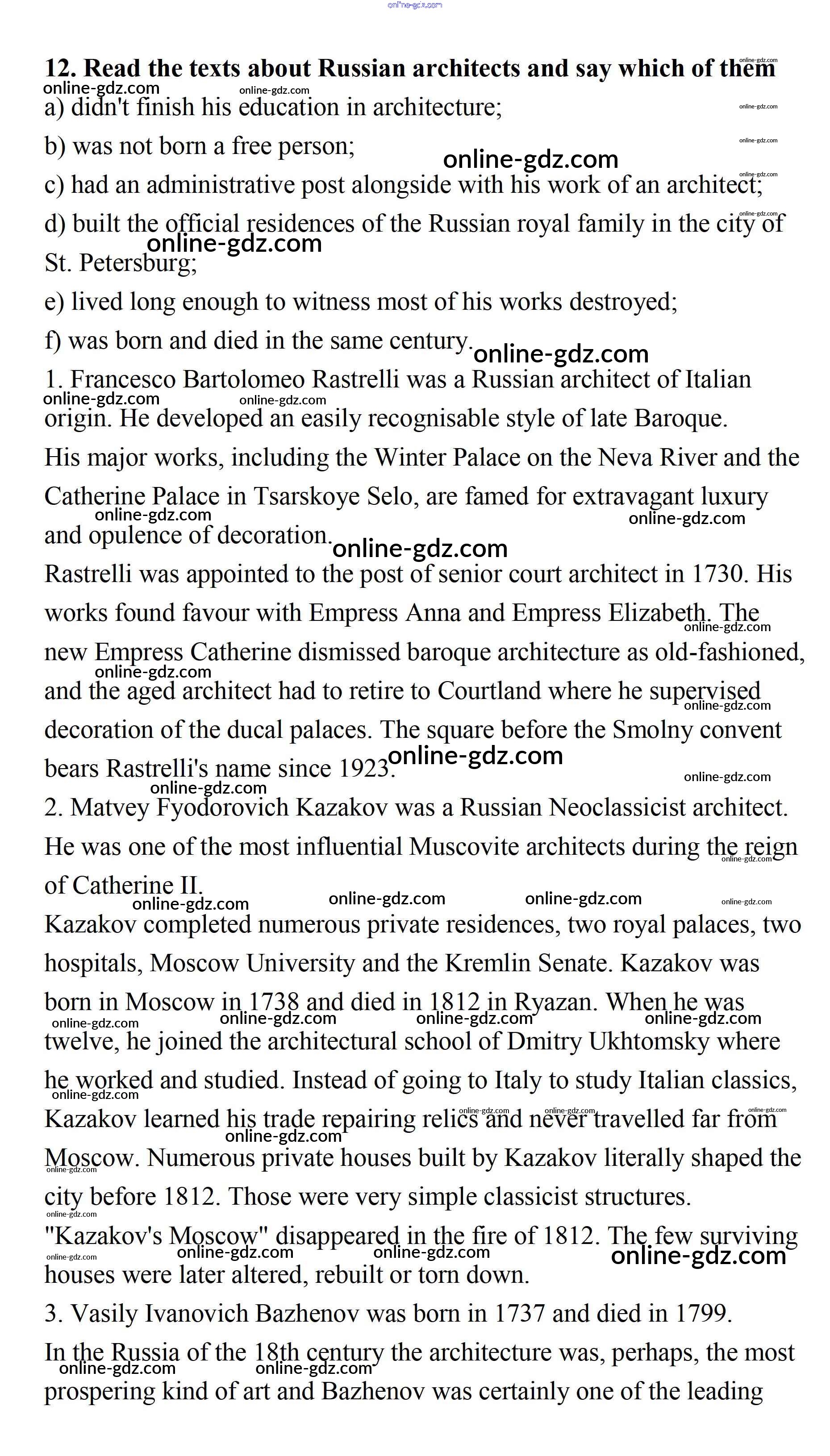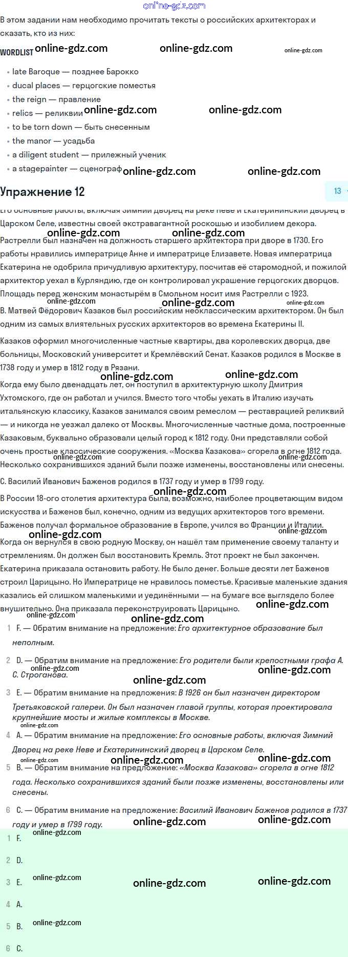 Готовые домашние задания по Английскому языку за 11 класс Учебник Афанасьева, Михеева Углубленный уровень 2015 - Unit 2. Town and Its Architecture 12