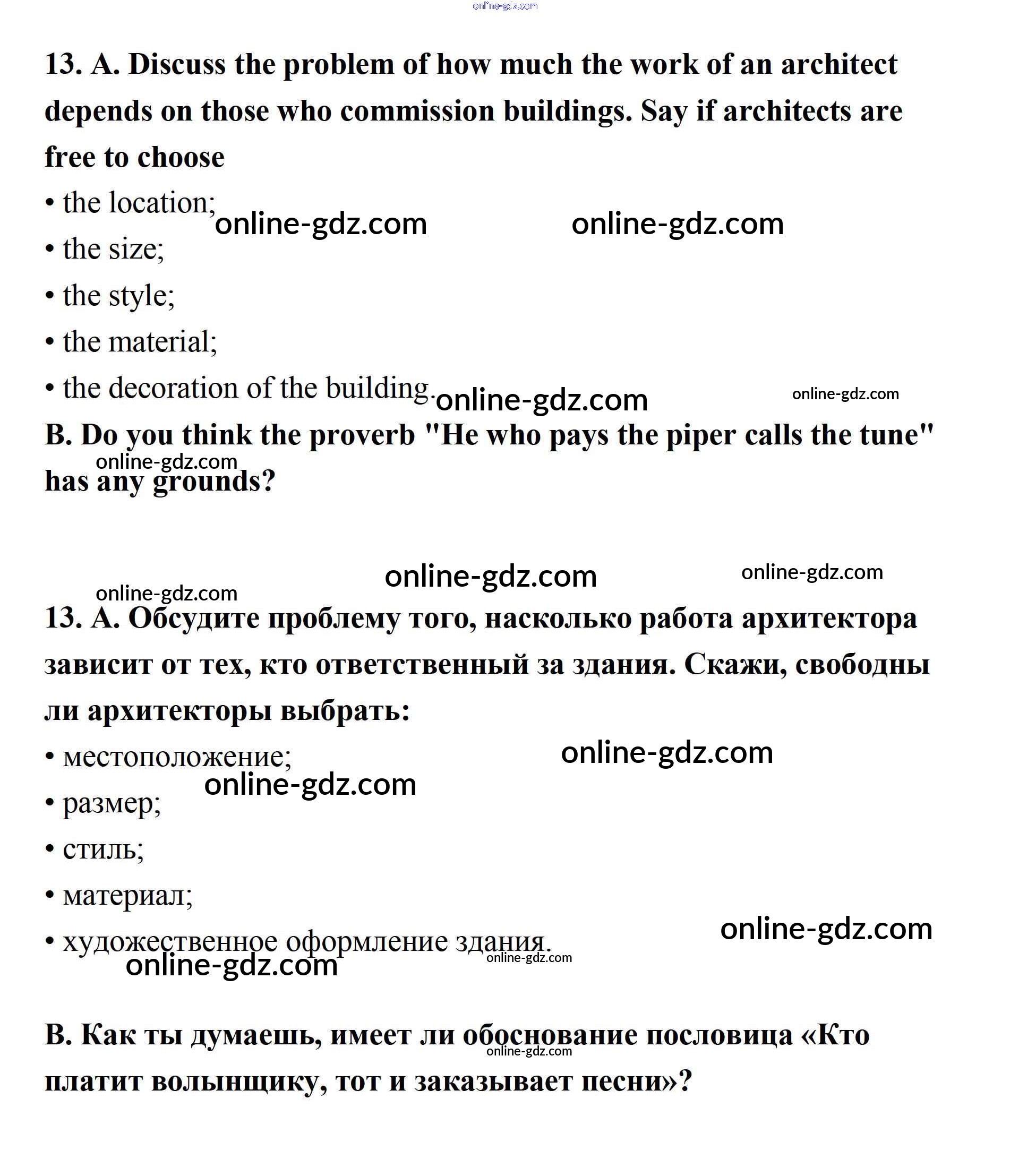 Готовые домашние задания по Английскому языку за 11 класс Учебник Афанасьева, Михеева Углубленный уровень 2015 - Unit 2. Town and Its Architecture 13