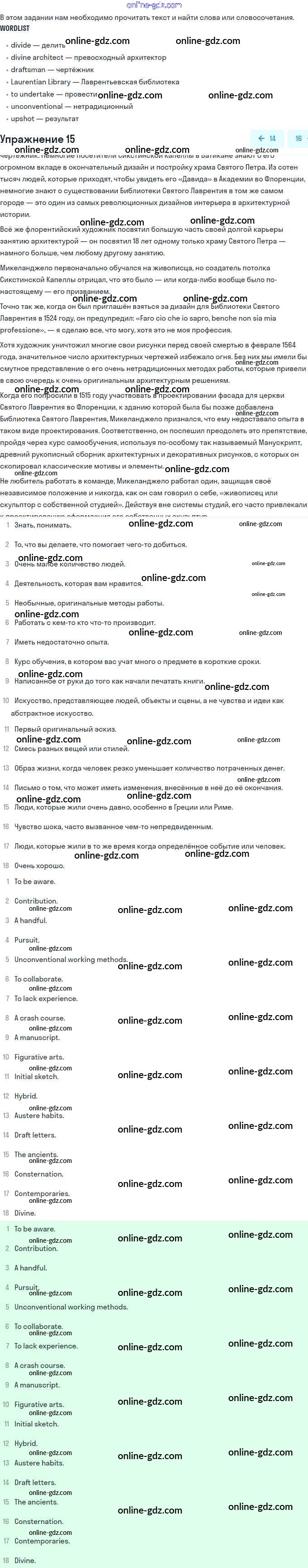Готовые домашние задания по Английскому языку за 11 класс Учебник Афанасьева, Михеева Углубленный уровень 2015 - Unit 2. Town and Its Architecture 15