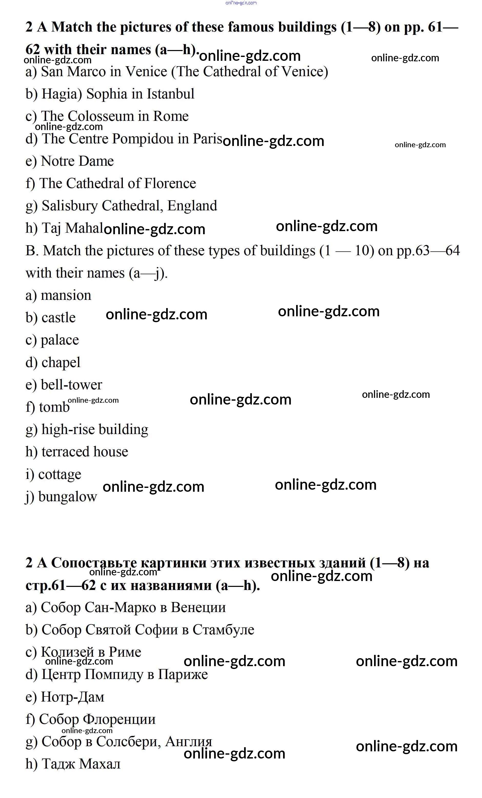 Готовые домашние задания по Английскому языку за 11 класс Учебник Афанасьева, Михеева Углубленный уровень 2015 - Unit 2. Town and Its Architecture 2