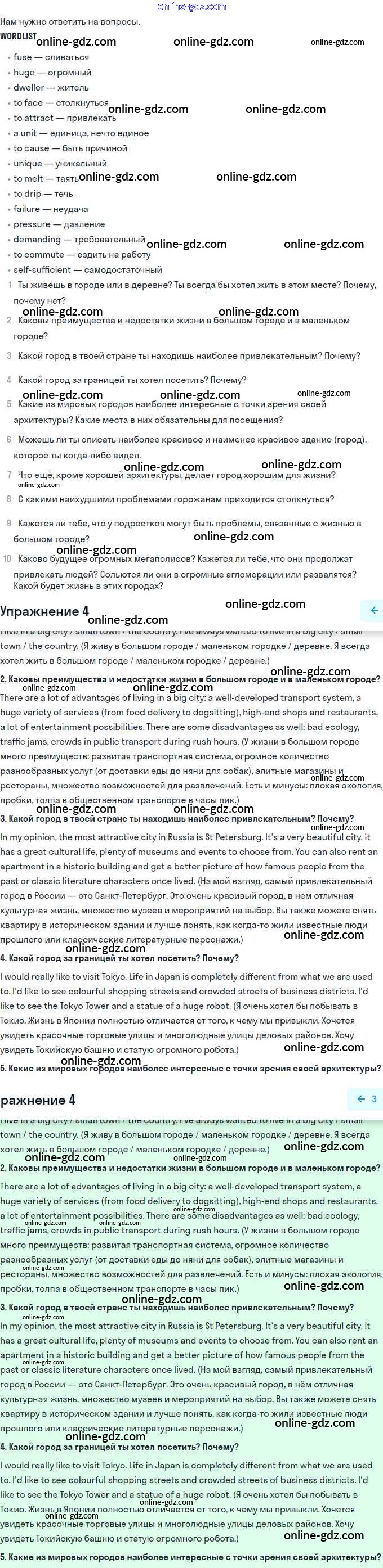 Готовые домашние задания по Английскому языку за 11 класс Учебник Афанасьева, Михеева Углубленный уровень 2015 - Unit 2. Town and Its Architecture 4