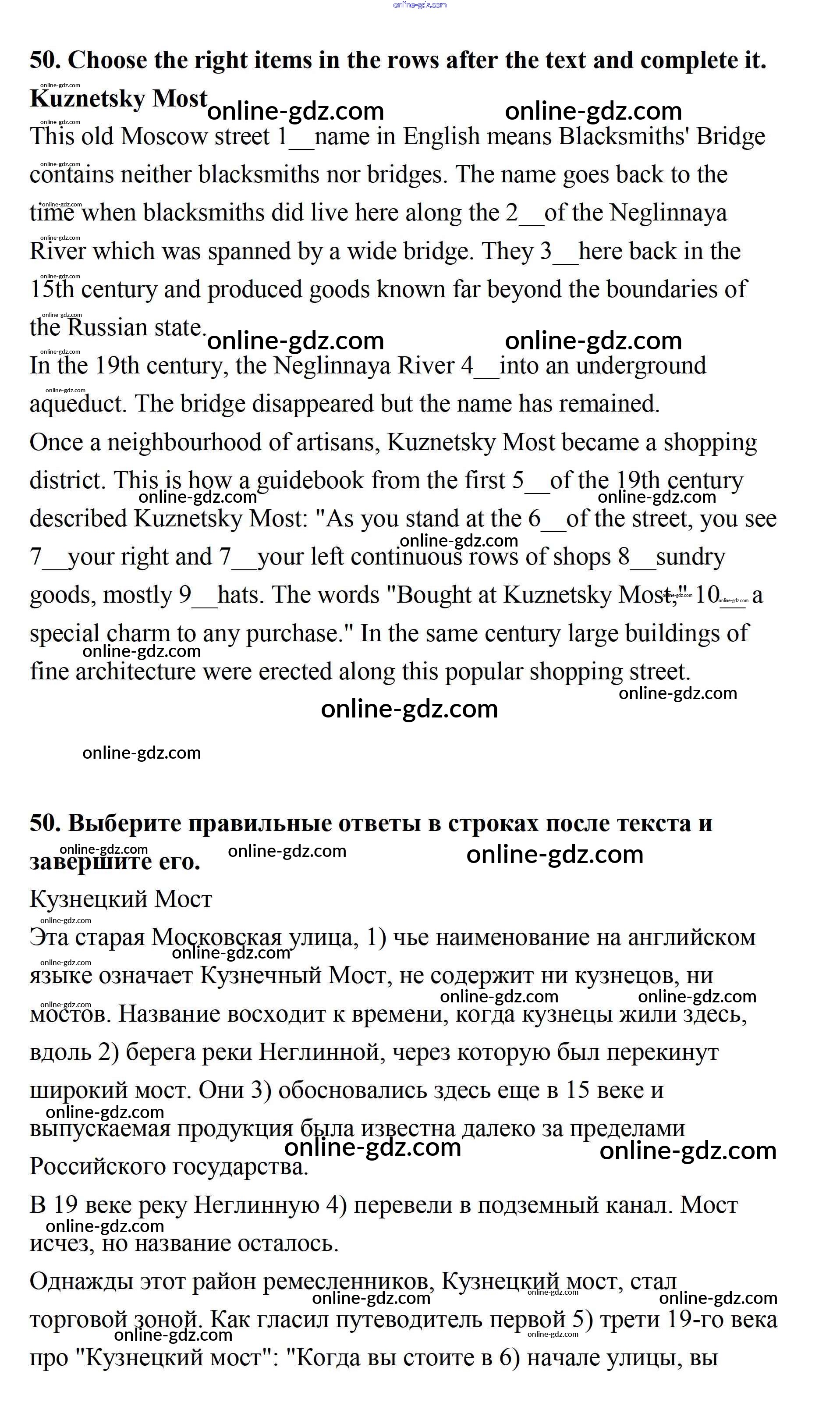 Готовые домашние задания по Английскому языку за 11 класс Учебник Афанасьева, Михеева Углубленный уровень 2015 - Unit 2. Town and Its Architecture 50