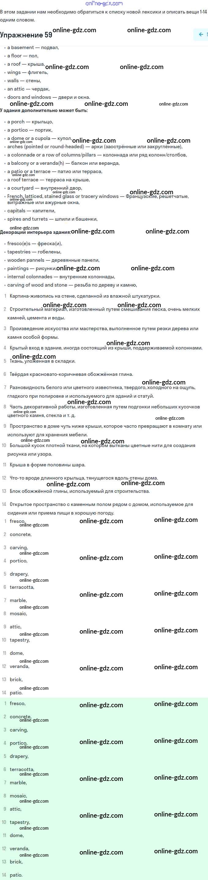 Готовые домашние задания по Английскому языку за 11 класс Учебник Афанасьева, Михеева Углубленный уровень 2015 - Unit 2. Town and Its Architecture 59