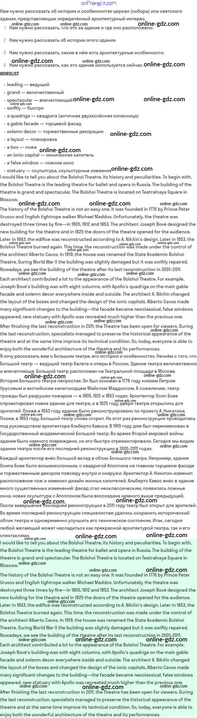 Готовые домашние задания по Английскому языку за 11 класс Учебник Афанасьева, Михеева Углубленный уровень 2015 - Unit 2. Town and Its Architecture 6