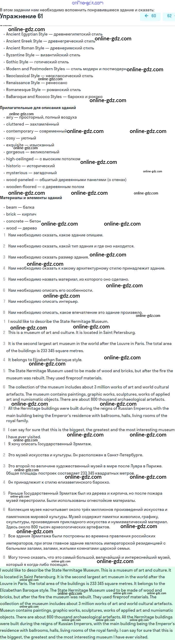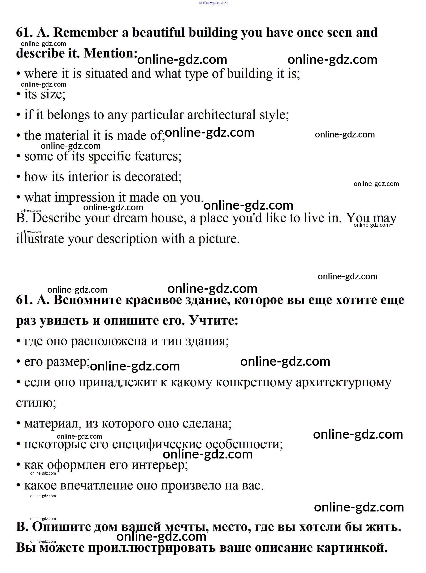 Готовые домашние задания по Английскому языку за 11 класс Учебник Афанасьева, Михеева Углубленный уровень 2015 - Unit 2. Town and Its Architecture 61
