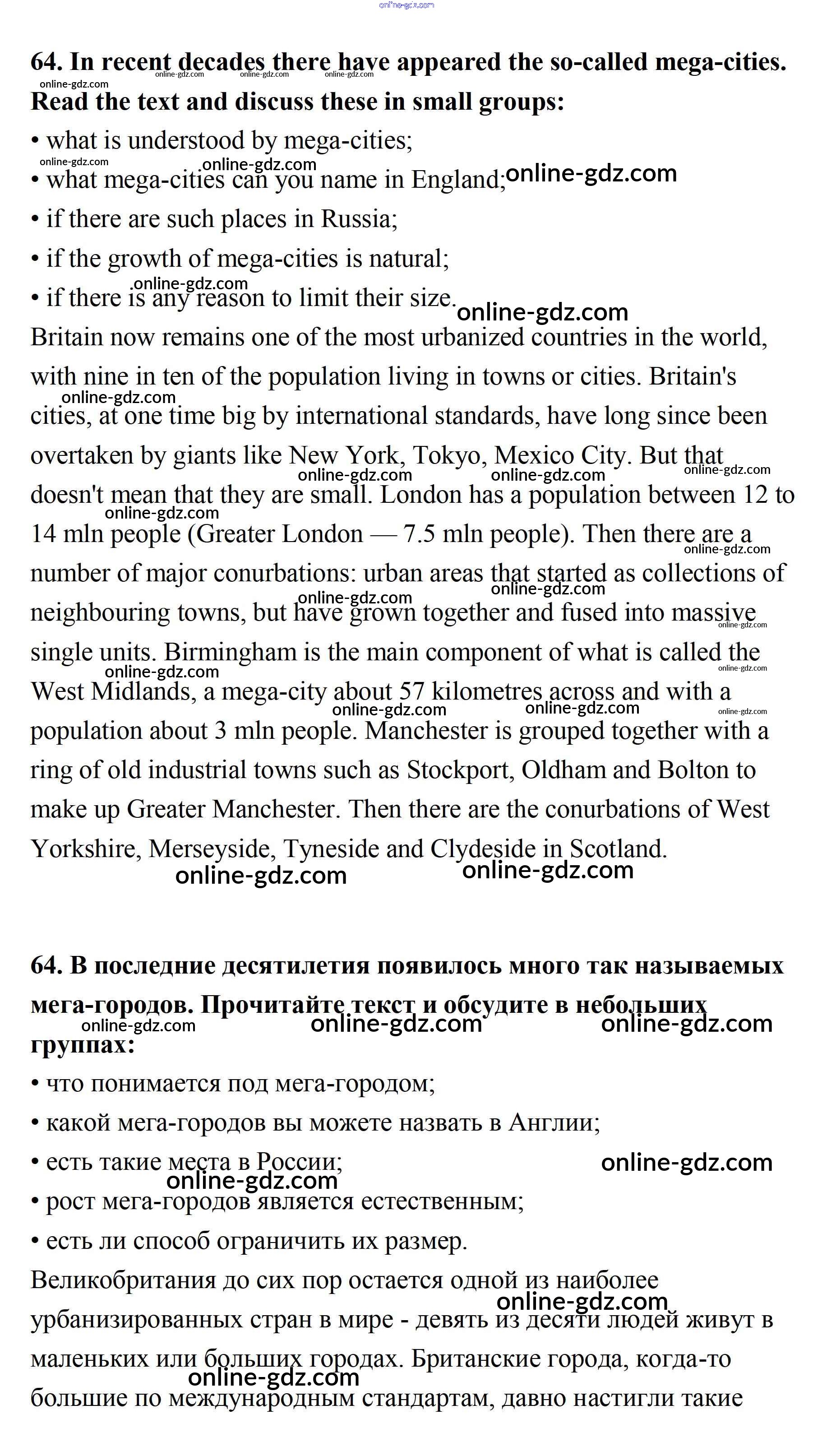 Готовые домашние задания по Английскому языку за 11 класс Учебник Афанасьева, Михеева Углубленный уровень 2015 - Unit 2. Town and Its Architecture 64