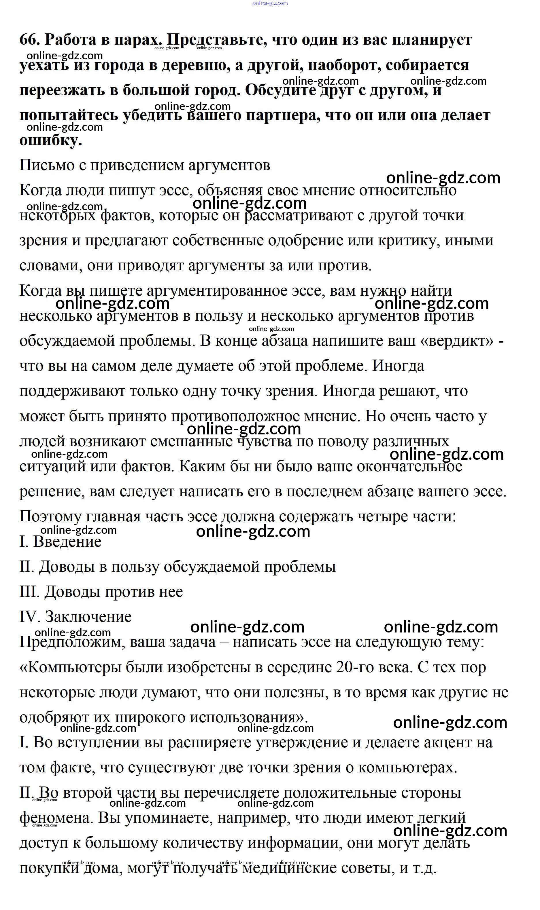 Готовые домашние задания по Английскому языку за 11 класс Учебник Афанасьева, Михеева Углубленный уровень 2015 - Unit 2. Town and Its Architecture 66