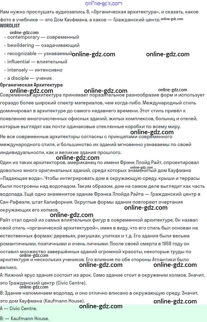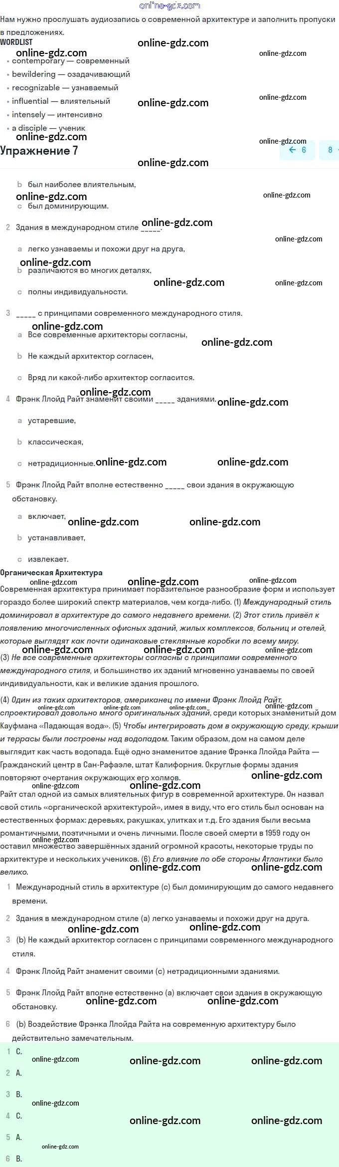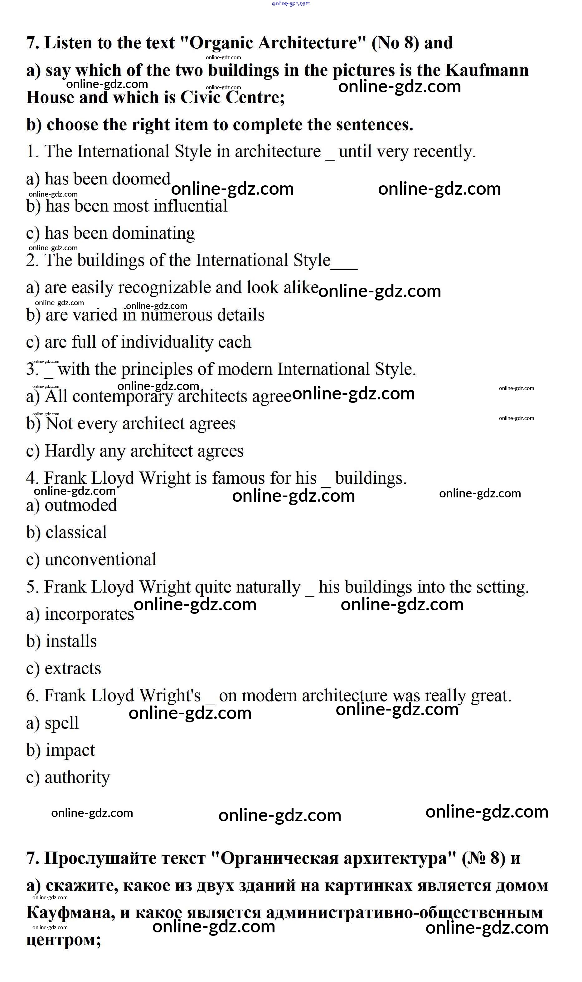Готовые домашние задания по Английскому языку за 11 класс Учебник Афанасьева, Михеева Углубленный уровень 2015 - Unit 2. Town and Its Architecture 7