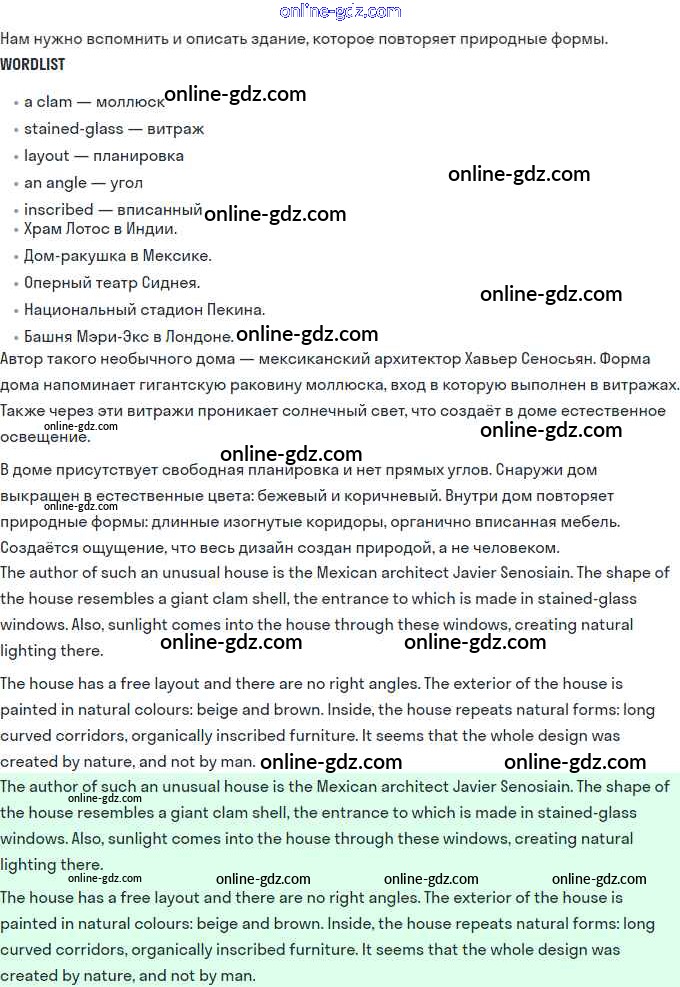 Готовые домашние задания по Английскому языку за 11 класс Учебник Афанасьева, Михеева Углубленный уровень 2015 - Unit 2. Town and Its Architecture 9