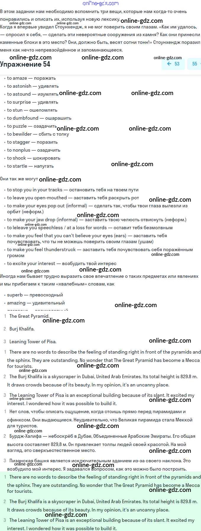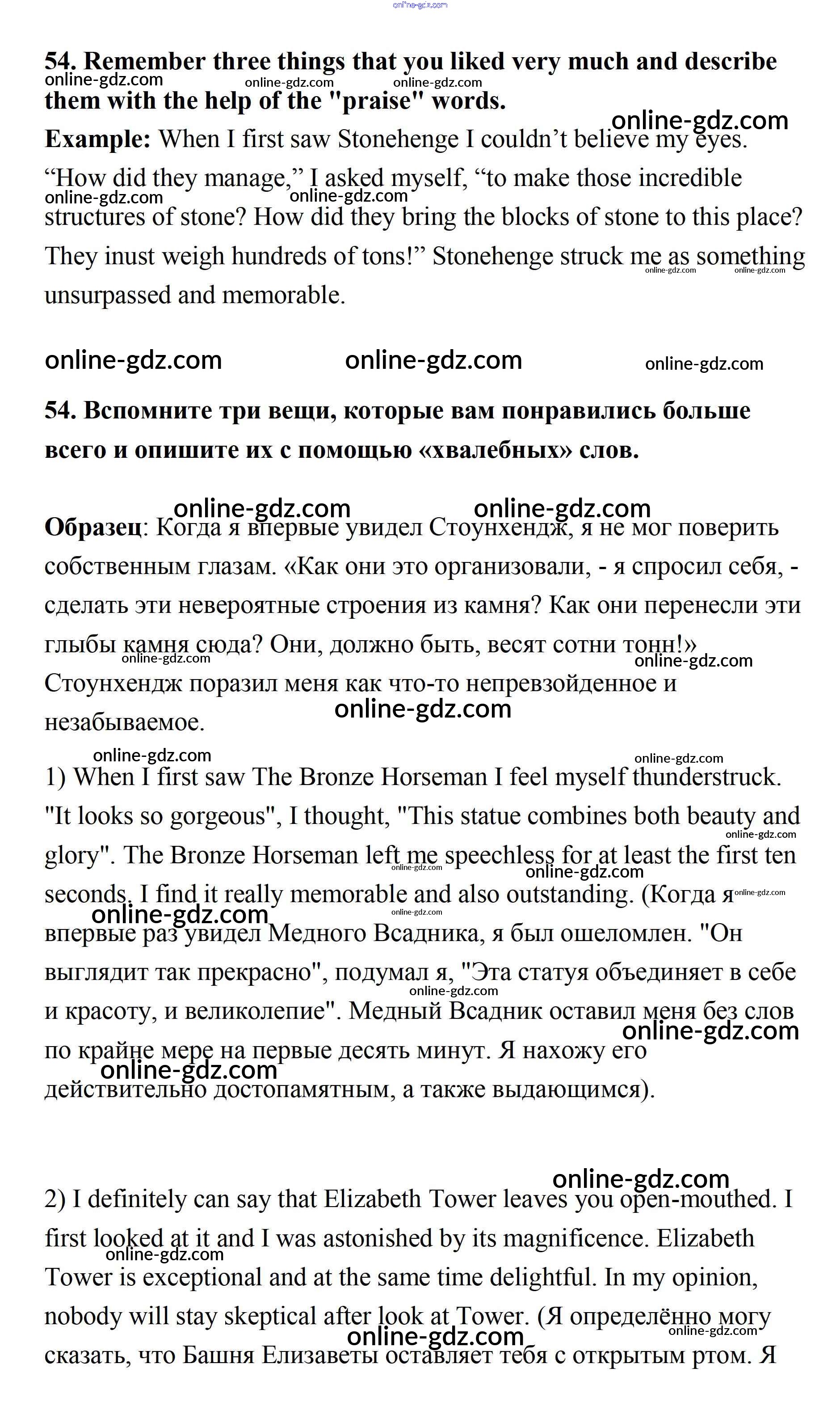 Готовые домашние задания по Английскому языку за 11 класс Учебник Афанасьева, Михеева Углубленный уровень 2015 - Unit 3. Wonders of the World 54