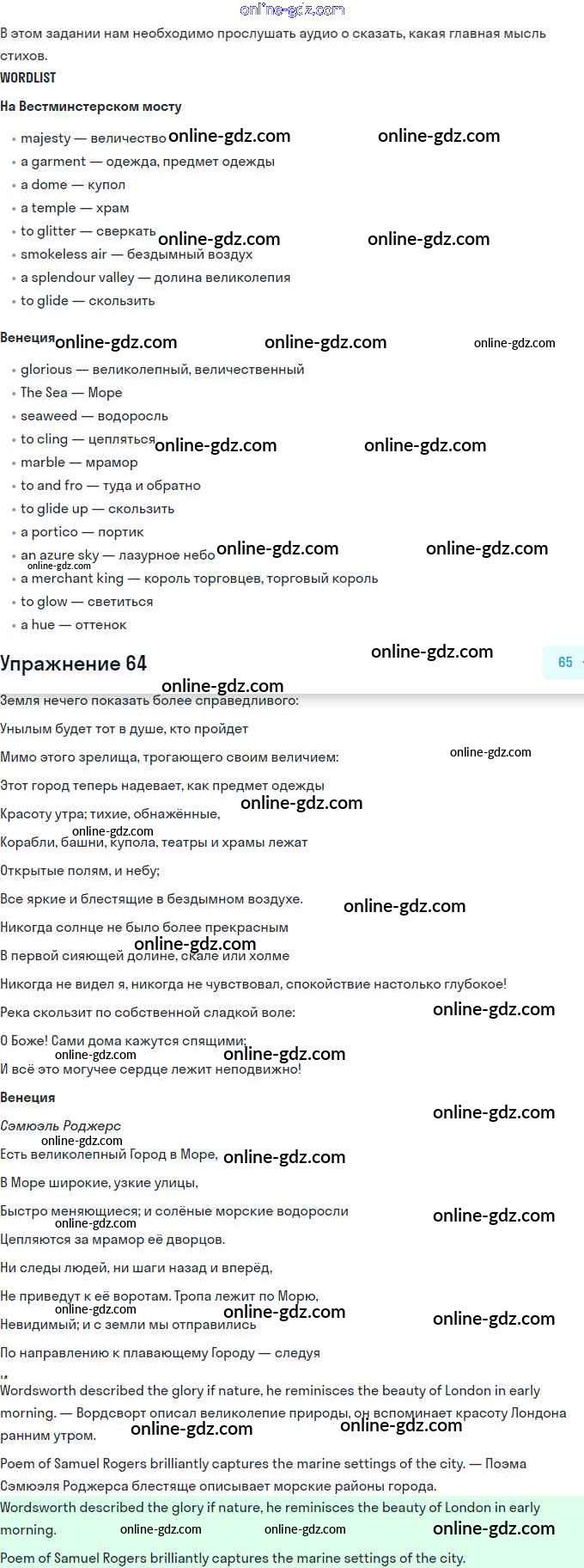 Готовые домашние задания по Английскому языку за 11 класс Учебник Афанасьева, Михеева Углубленный уровень 2015 - Unit 3. Wonders of the World 64