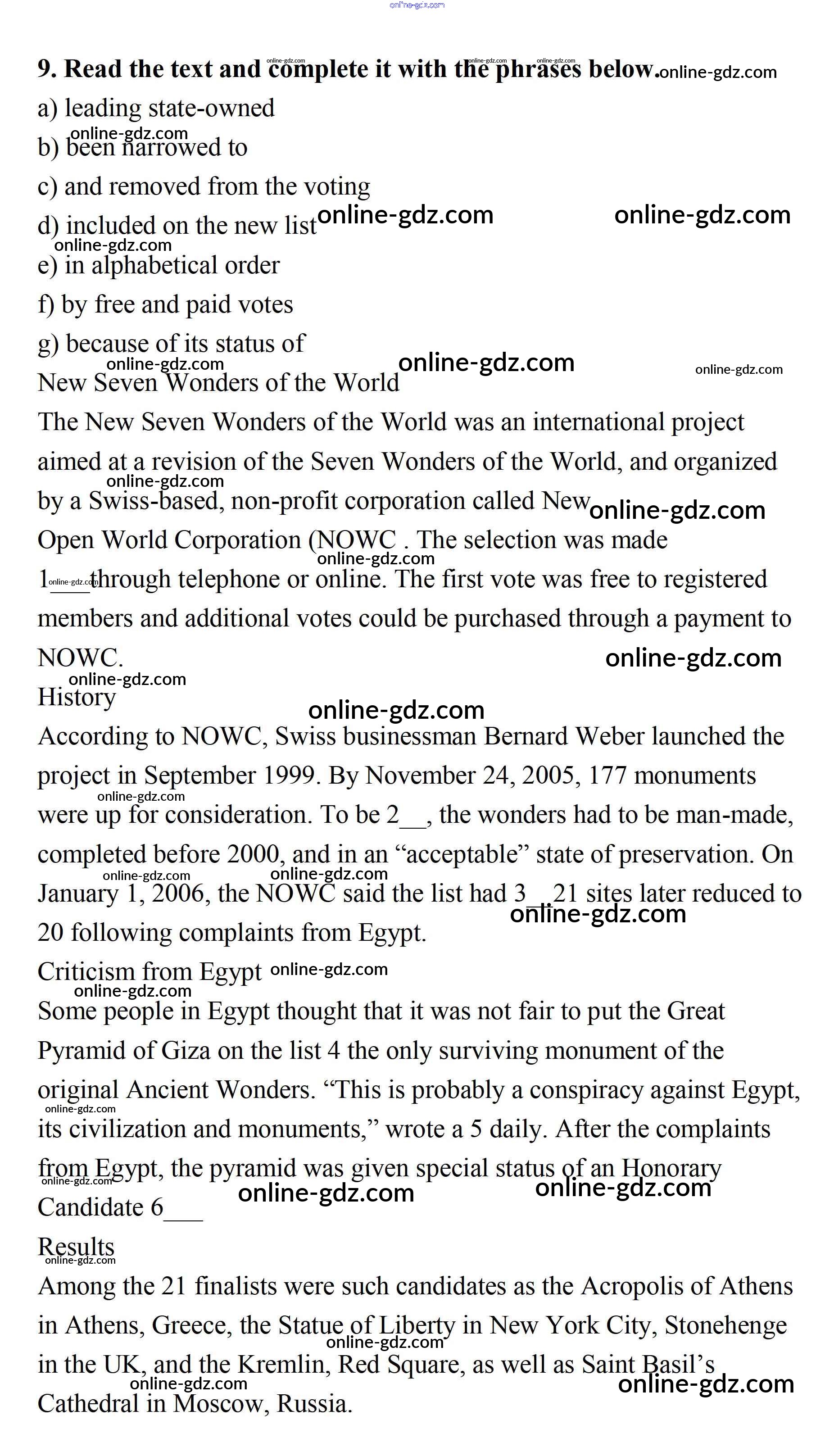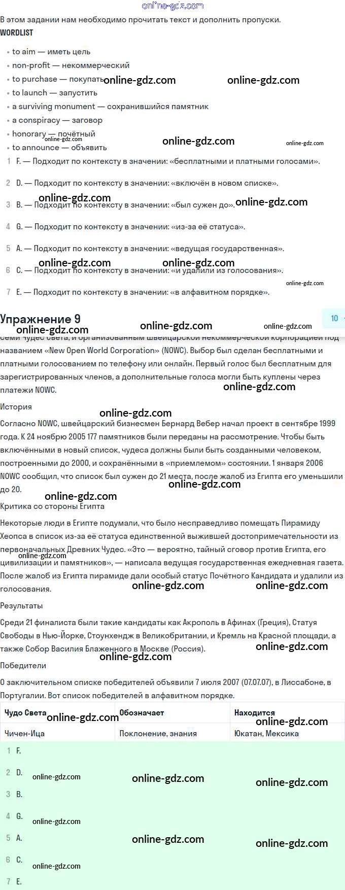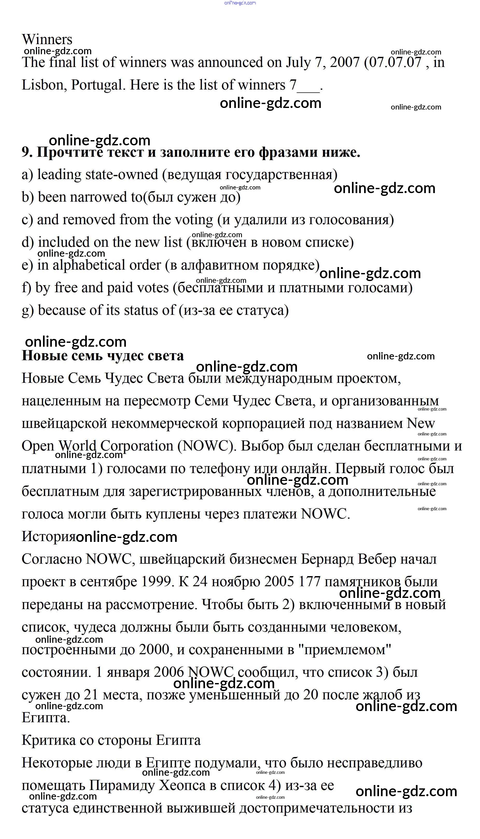 Готовые домашние задания по Английскому языку за 11 класс Учебник Афанасьева, Михеева Углубленный уровень 2015 - Unit 3. Wonders of the World 9