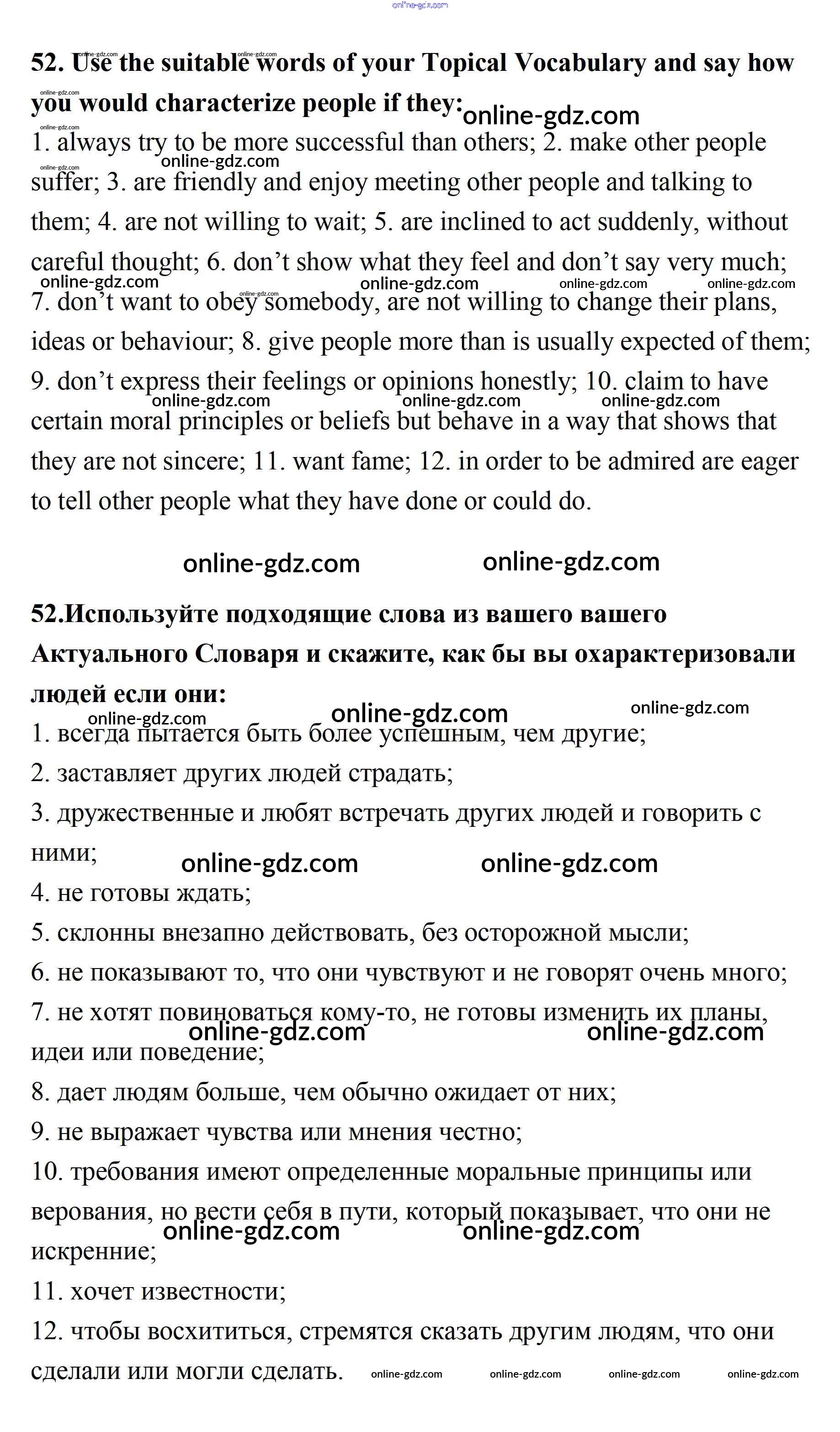 Готовые домашние задания по Английскому языку за 11 класс Учебник Афанасьева, Михеева Углубленный уровень 2015 - Unit 4. Man as the Greatest Wonder of the World 52