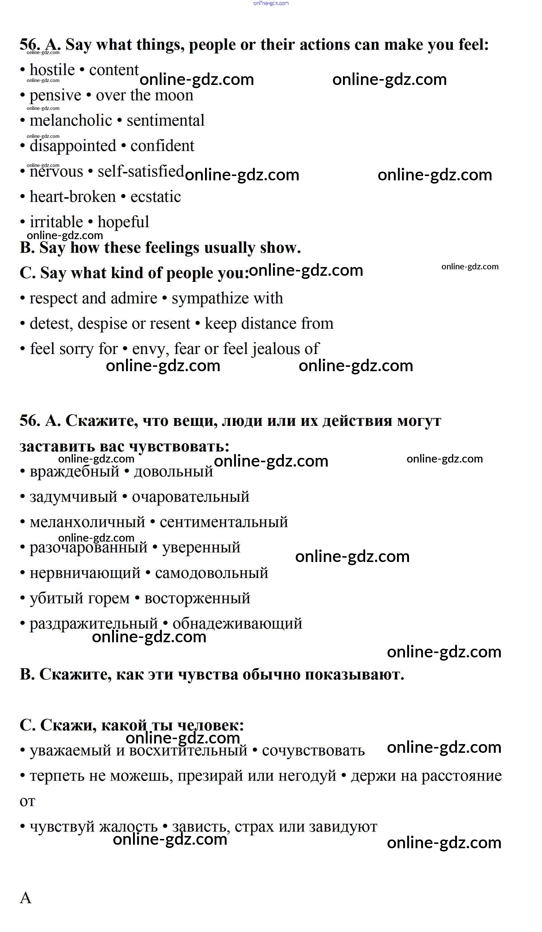 Готовые домашние задания по Английскому языку за 11 класс Учебник Афанасьева, Михеева Углубленный уровень 2015 - Unit 4. Man as the Greatest Wonder of the World 56