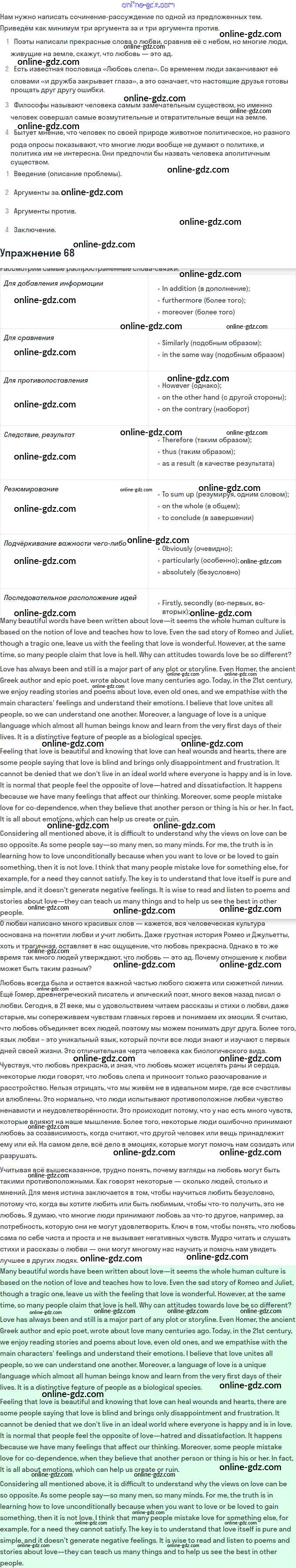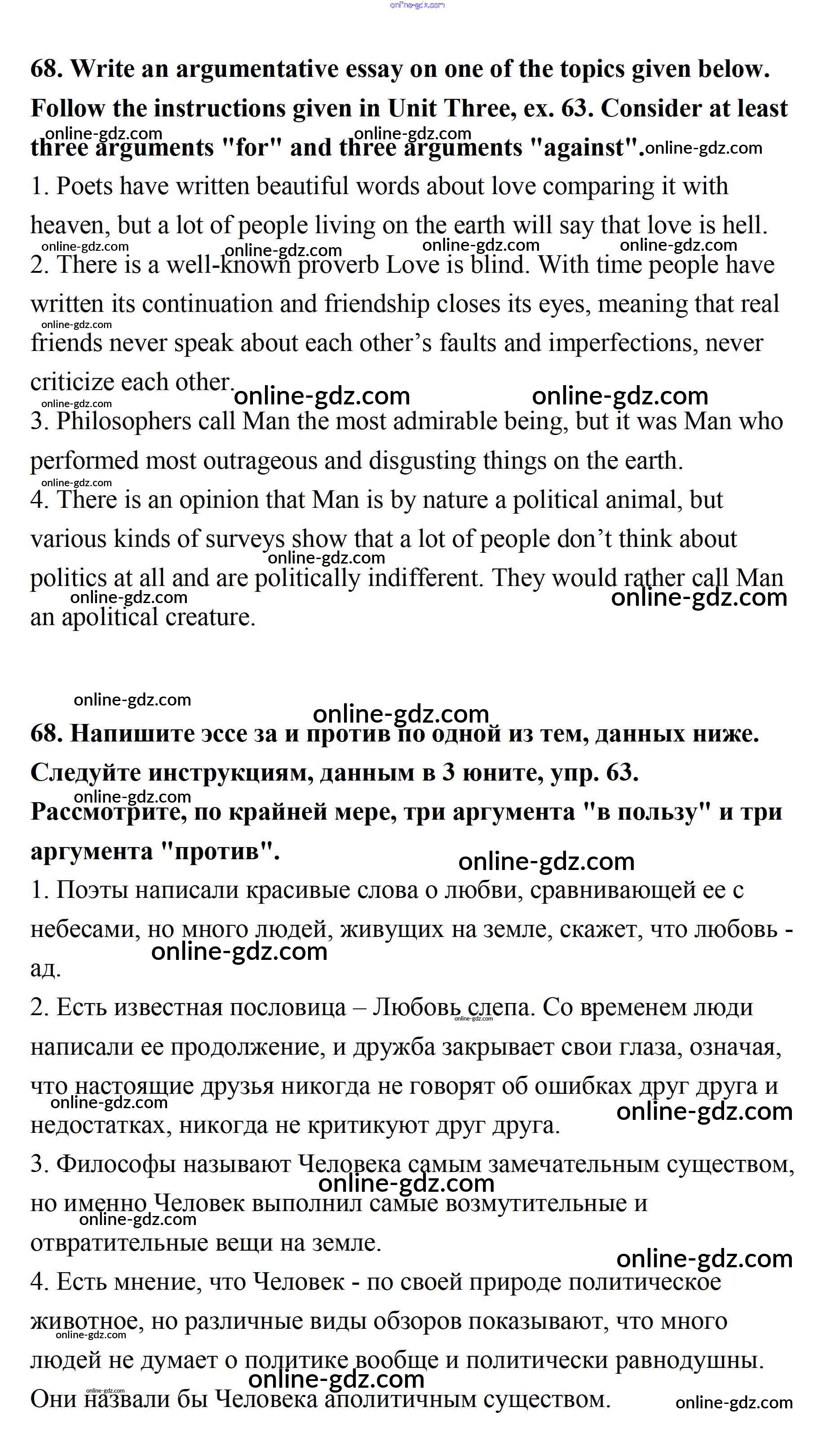Готовые домашние задания по Английскому языку за 11 класс Учебник Афанасьева, Михеева Углубленный уровень 2015 - Unit 4. Man as the Greatest Wonder of the World 68