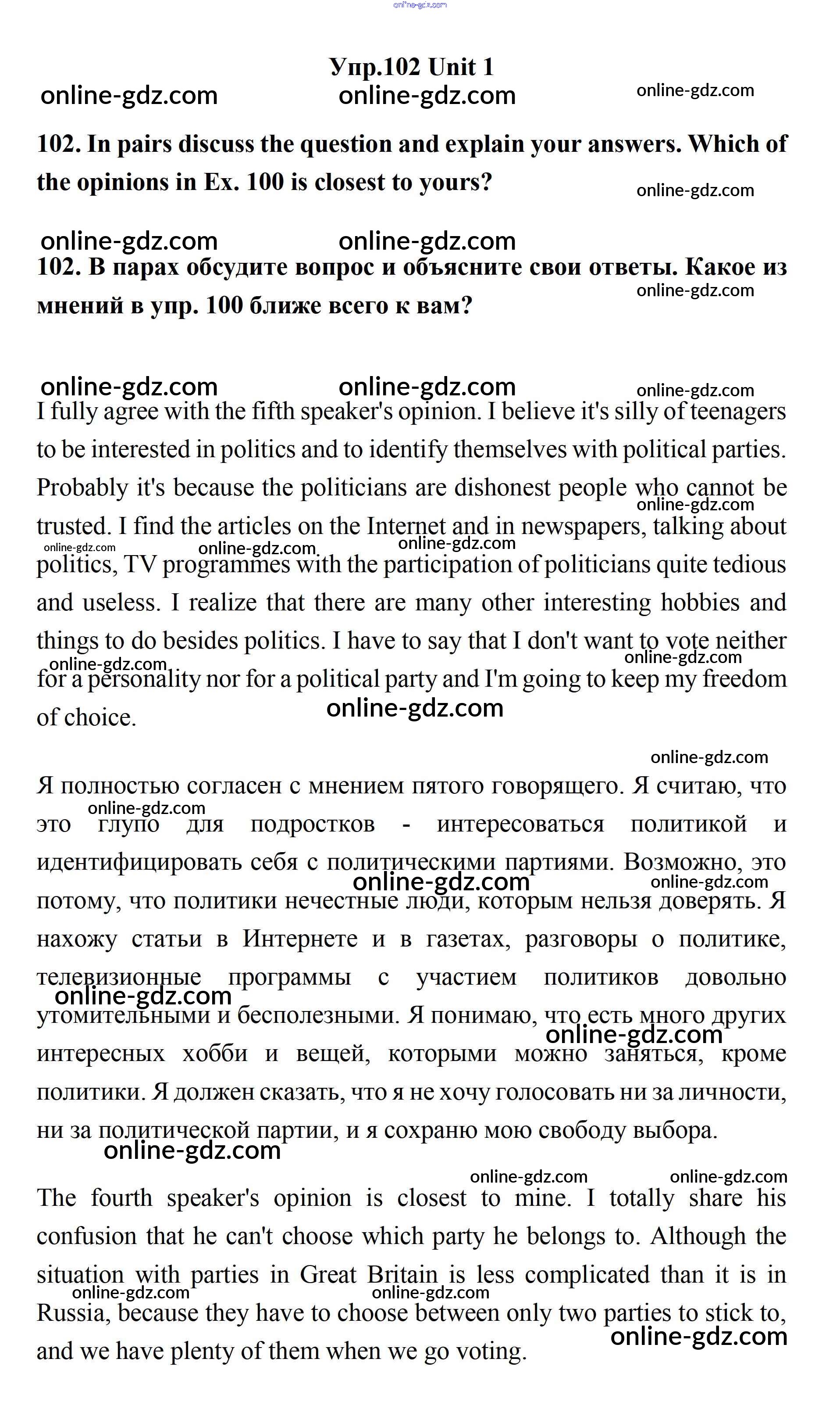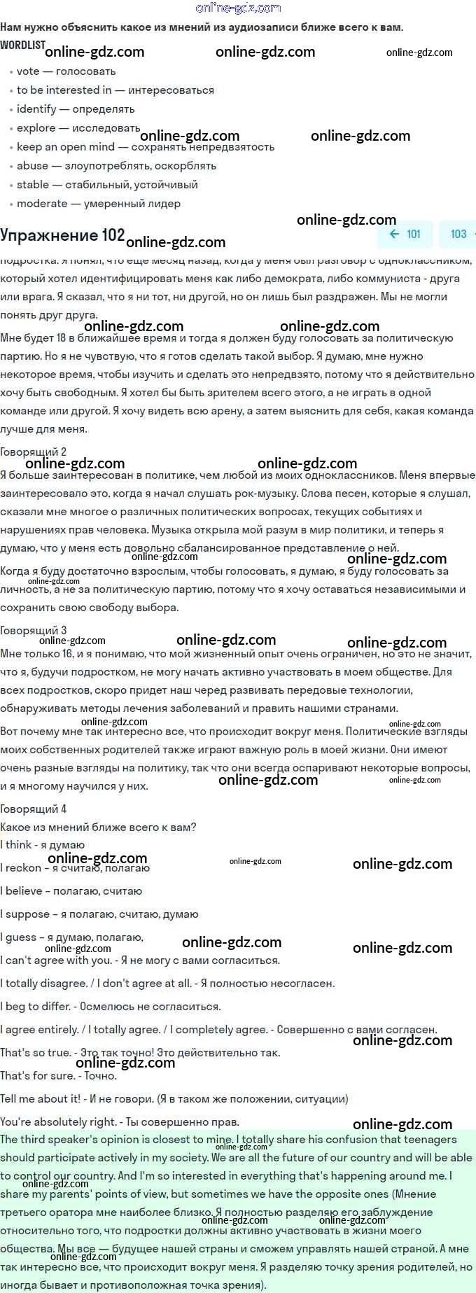 Готовые домашние задания по Английскому языку за 11 класс Учебник Биболетова, Бабушис Enjoy English 2017 - Unit 1. Young People in Society 102