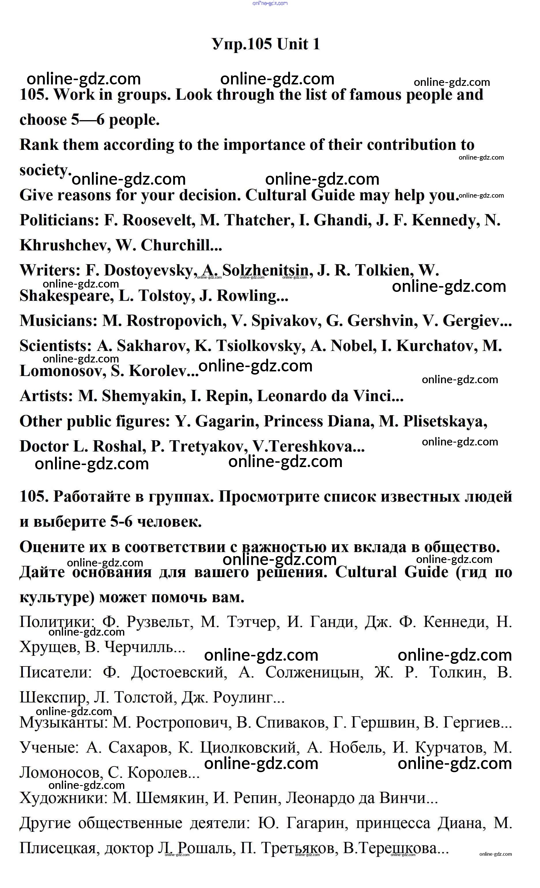Готовые домашние задания по Английскому языку за 11 класс Учебник Биболетова, Бабушис Enjoy English 2017 - Unit 1. Young People in Society 105