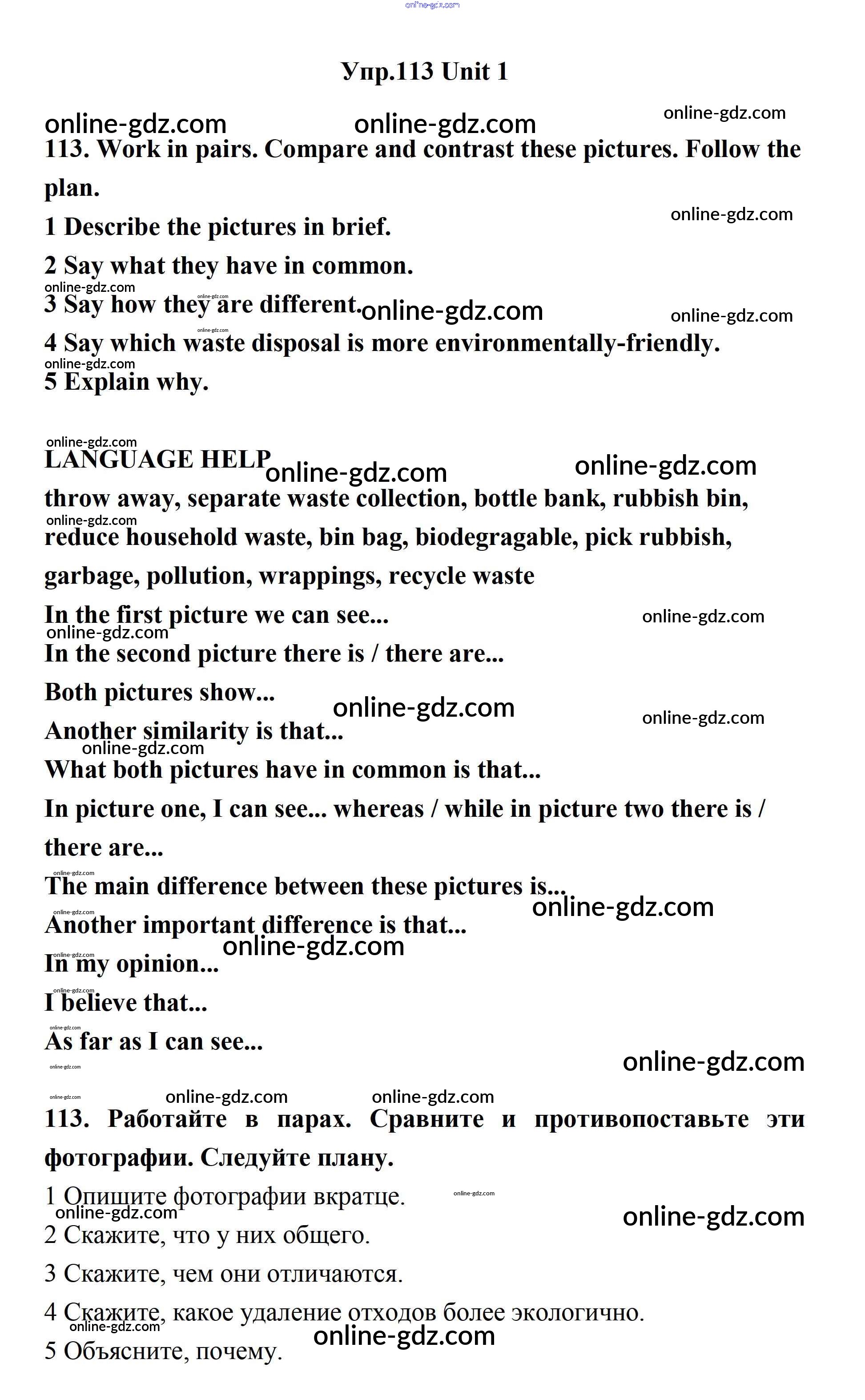 Готовые домашние задания по Английскому языку за 11 класс Учебник Биболетова, Бабушис Enjoy English 2017 - Unit 1. Young People in Society 113