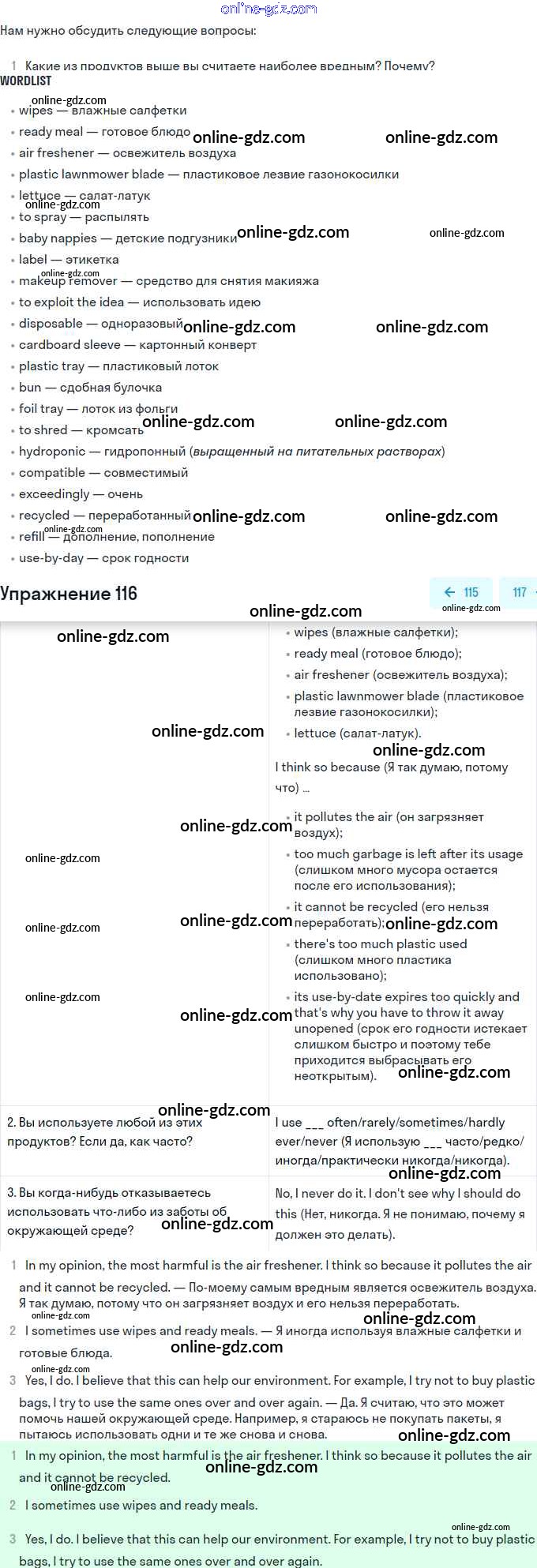Готовые домашние задания по Английскому языку за 11 класс Учебник Биболетова, Бабушис Enjoy English 2017 - Unit 1. Young People in Society 116