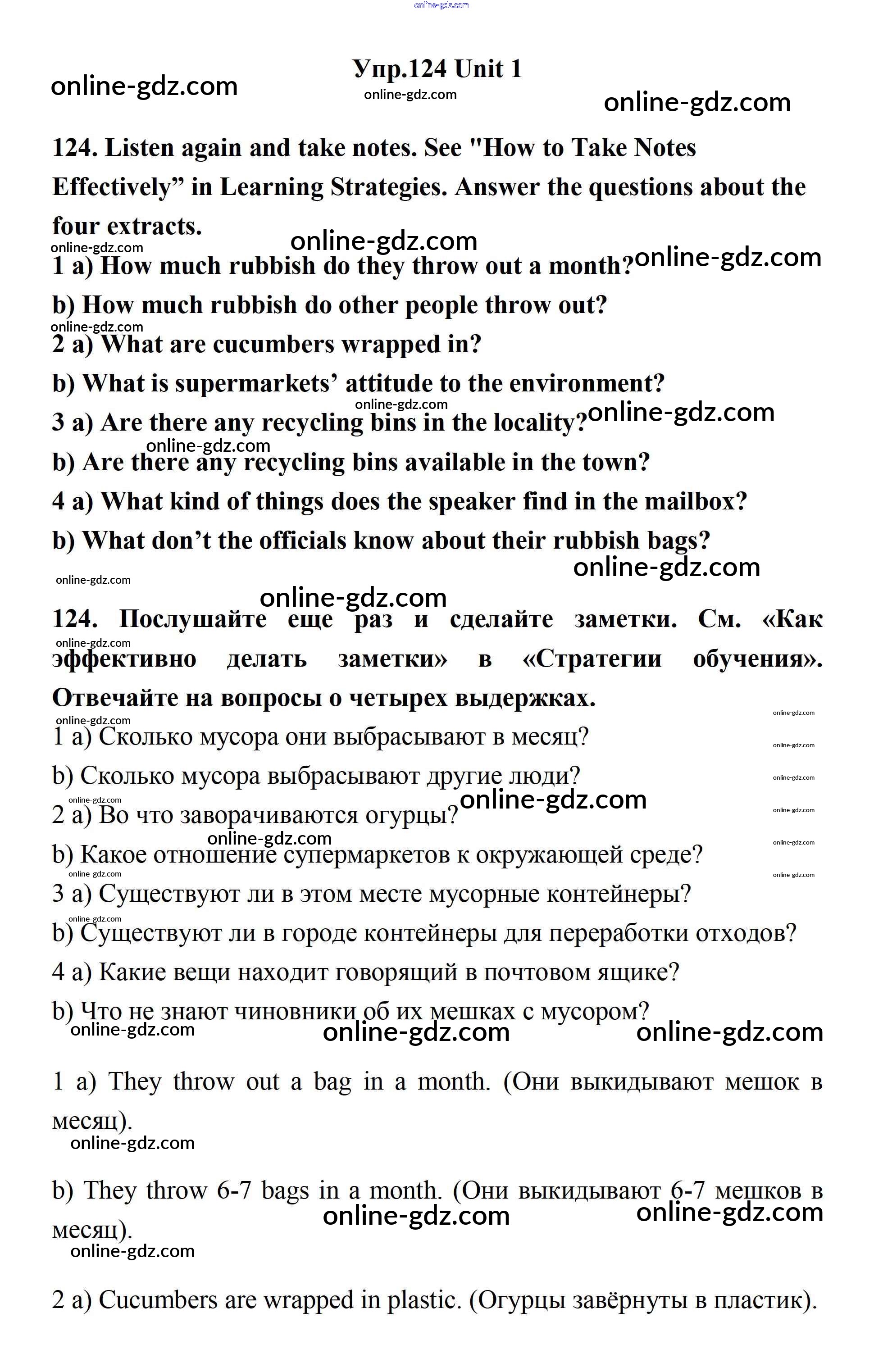 Готовые домашние задания по Английскому языку за 11 класс Учебник Биболетова, Бабушис Enjoy English 2017 - Unit 1. Young People in Society 124