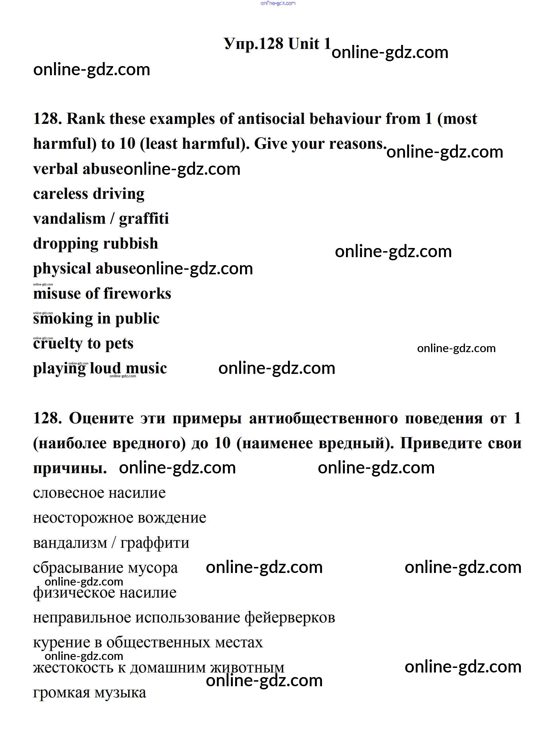 Готовые домашние задания по Английскому языку за 11 класс Учебник Биболетова, Бабушис Enjoy English 2017 - Unit 1. Young People in Society 128