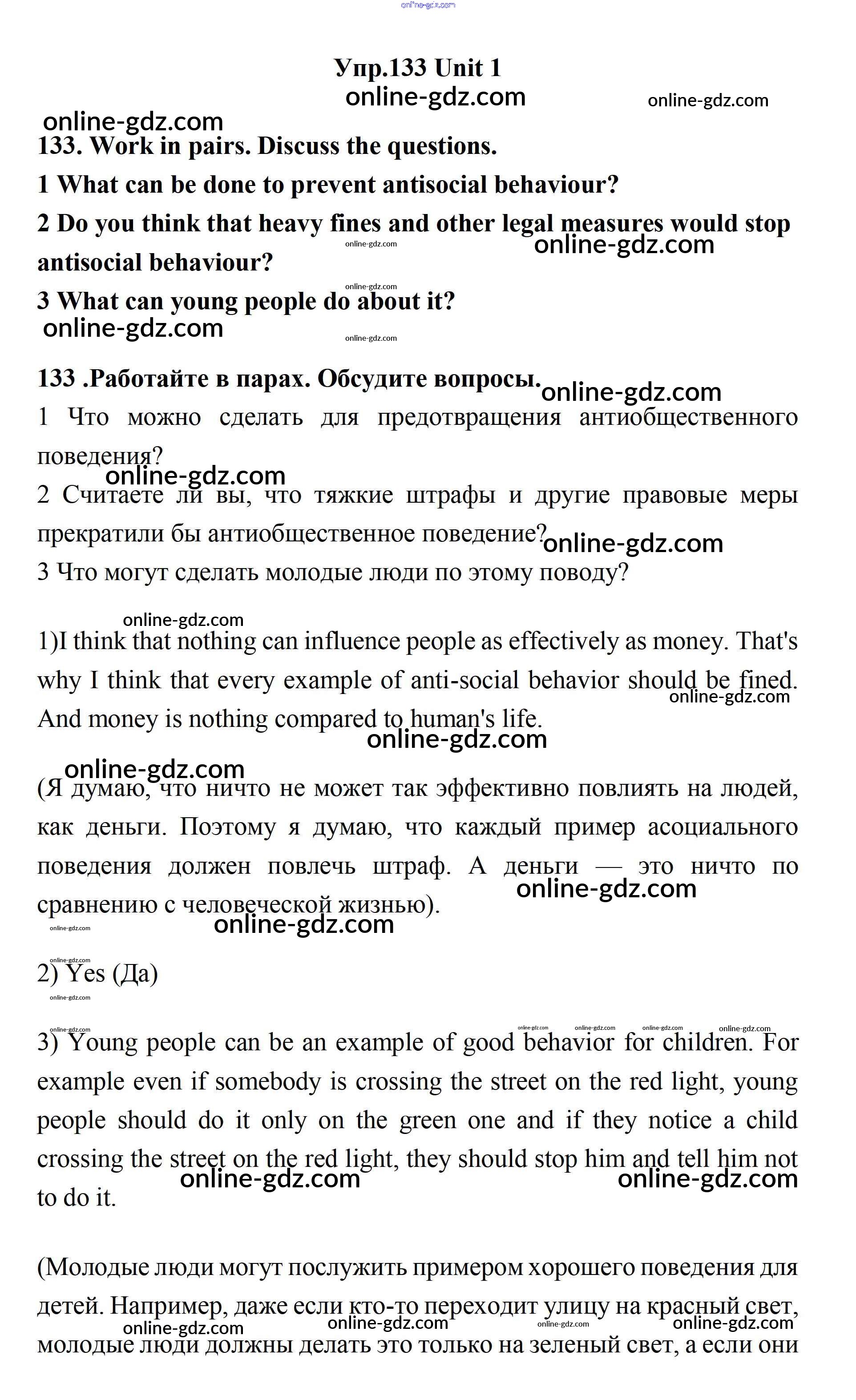 Готовые домашние задания по Английскому языку за 11 класс Учебник Биболетова, Бабушис Enjoy English 2017 - Unit 1. Young People in Society 133