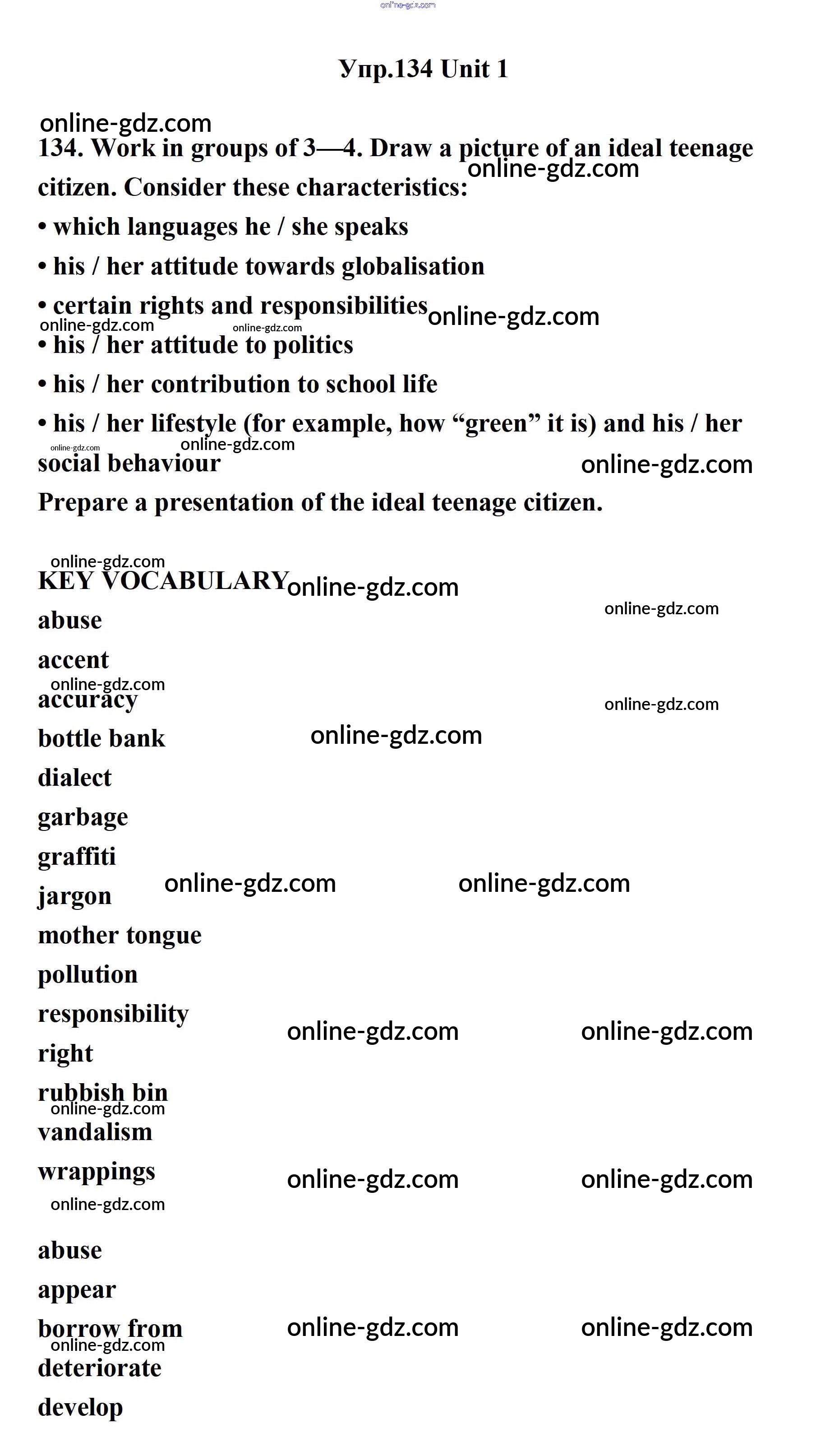 Готовые домашние задания по Английскому языку за 11 класс Учебник Биболетова, Бабушис Enjoy English 2017 - Unit 1. Young People in Society 134