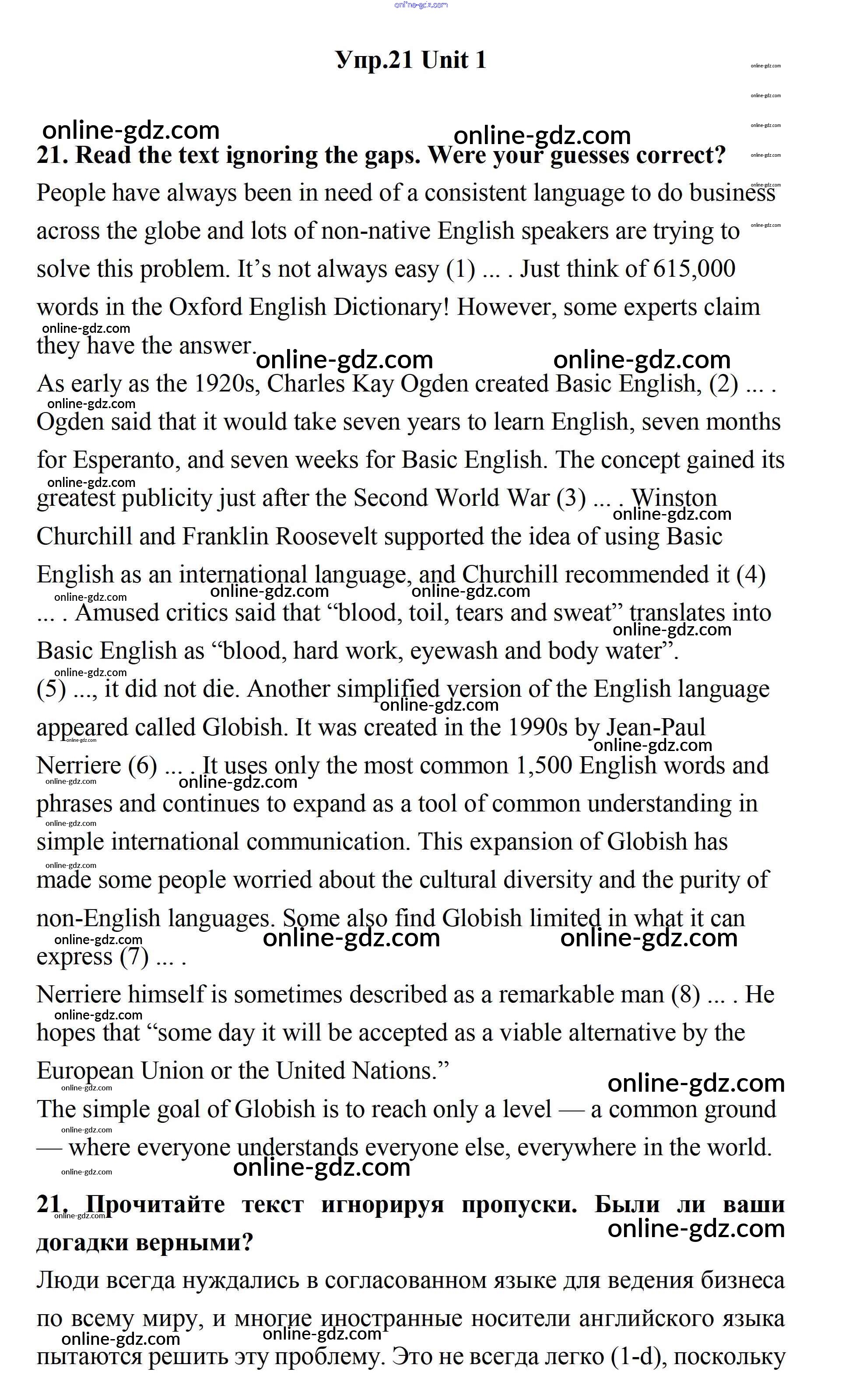 Готовые домашние задания по Английскому языку за 11 класс Учебник Биболетова, Бабушис Enjoy English 2017 - Unit 1. Young People in Society 21