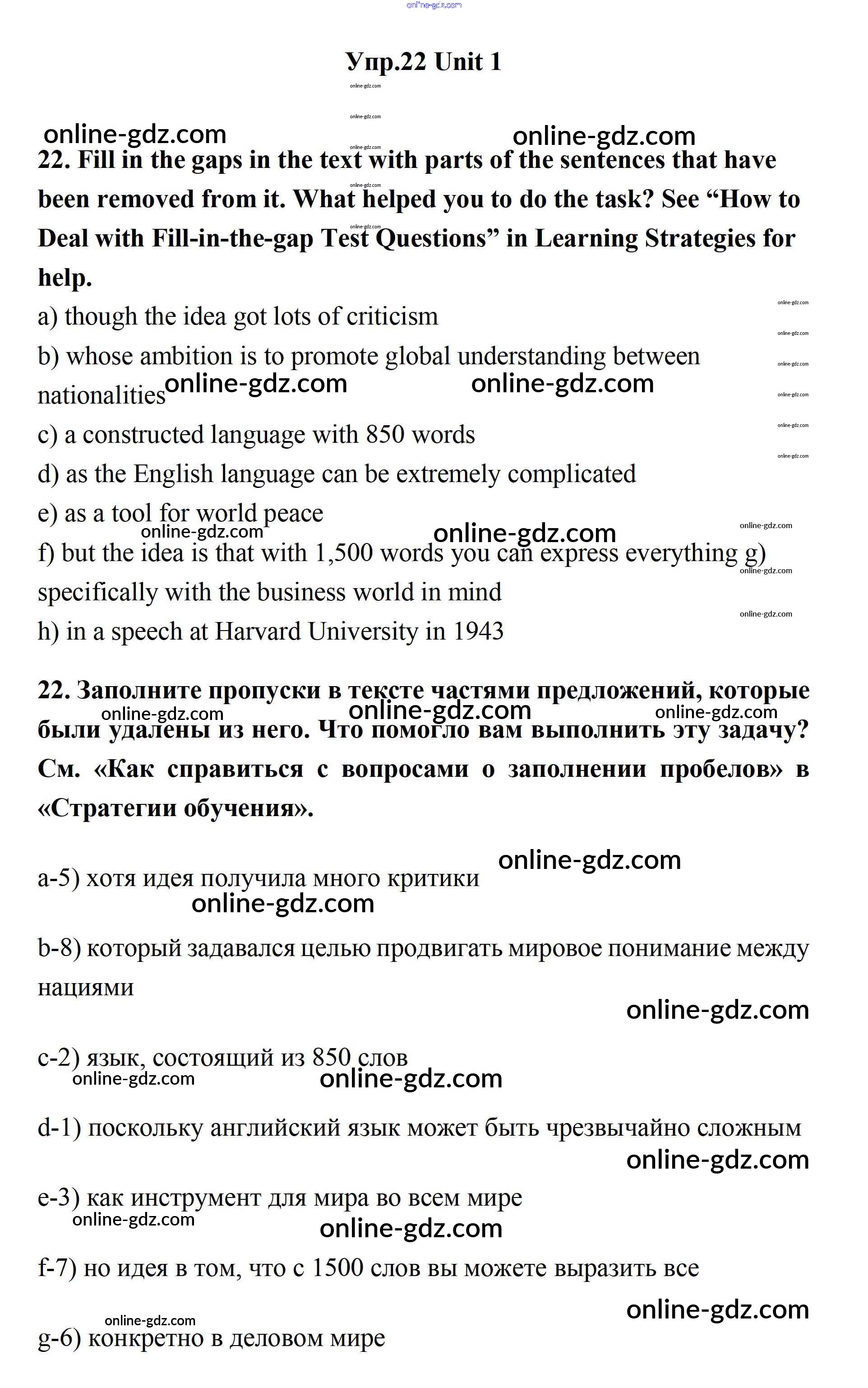 Готовые домашние задания по Английскому языку за 11 класс Учебник Биболетова, Бабушис Enjoy English 2017 - Unit 1. Young People in Society 22