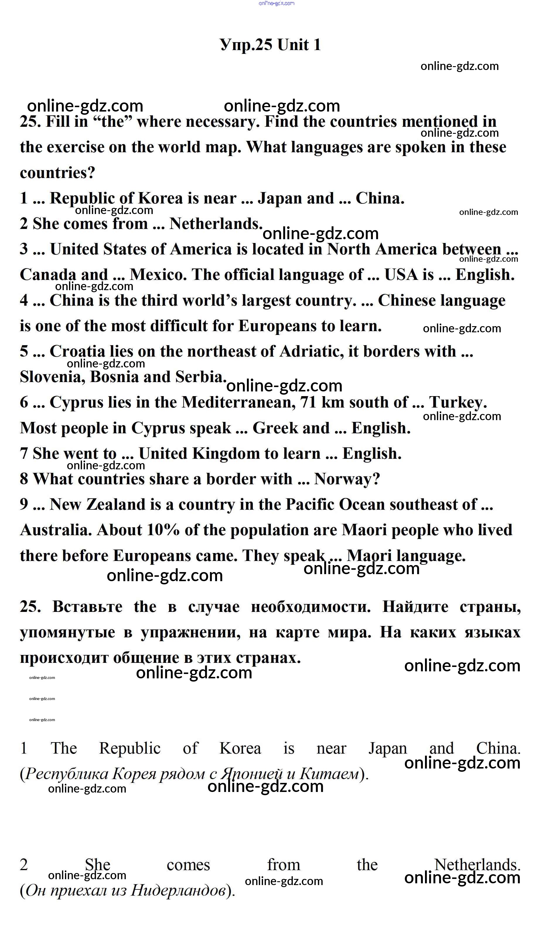 Готовые домашние задания по Английскому языку за 11 класс Учебник Биболетова, Бабушис Enjoy English 2017 - Unit 1. Young People in Society 25