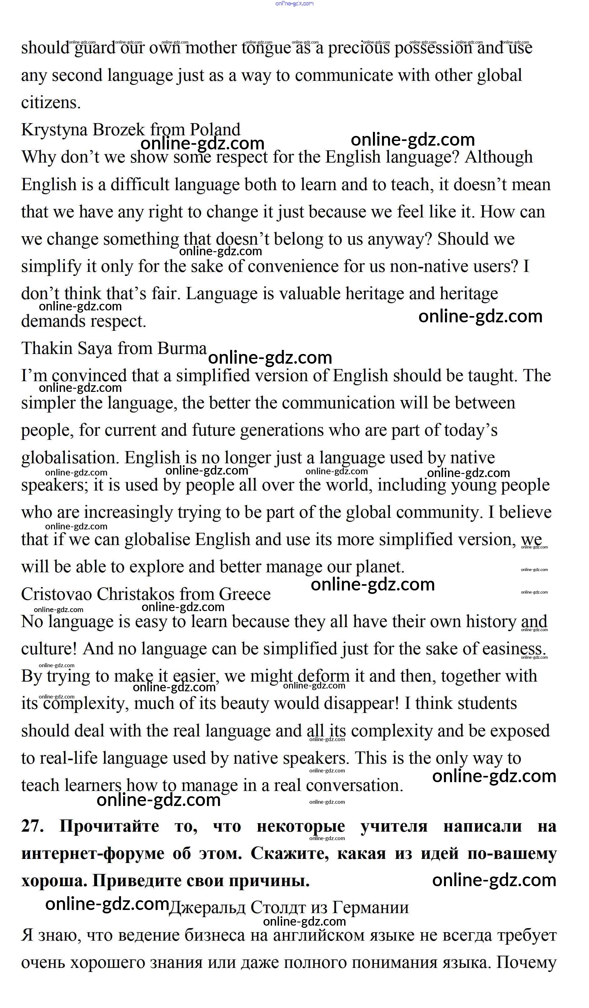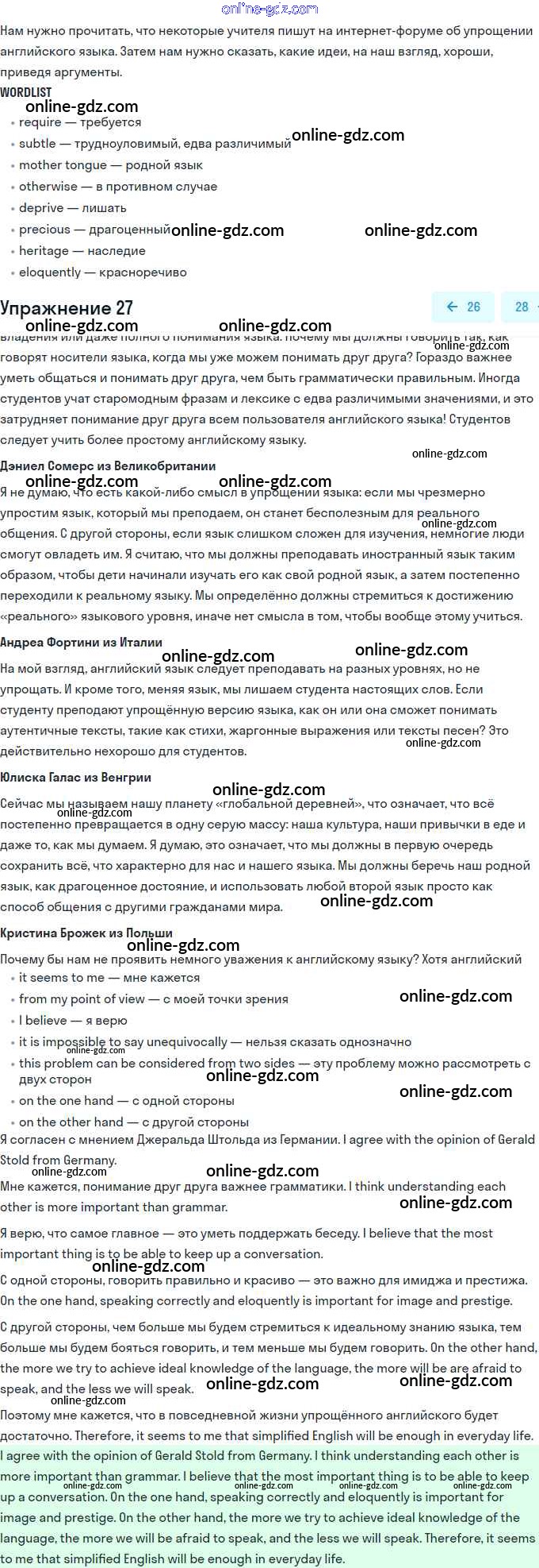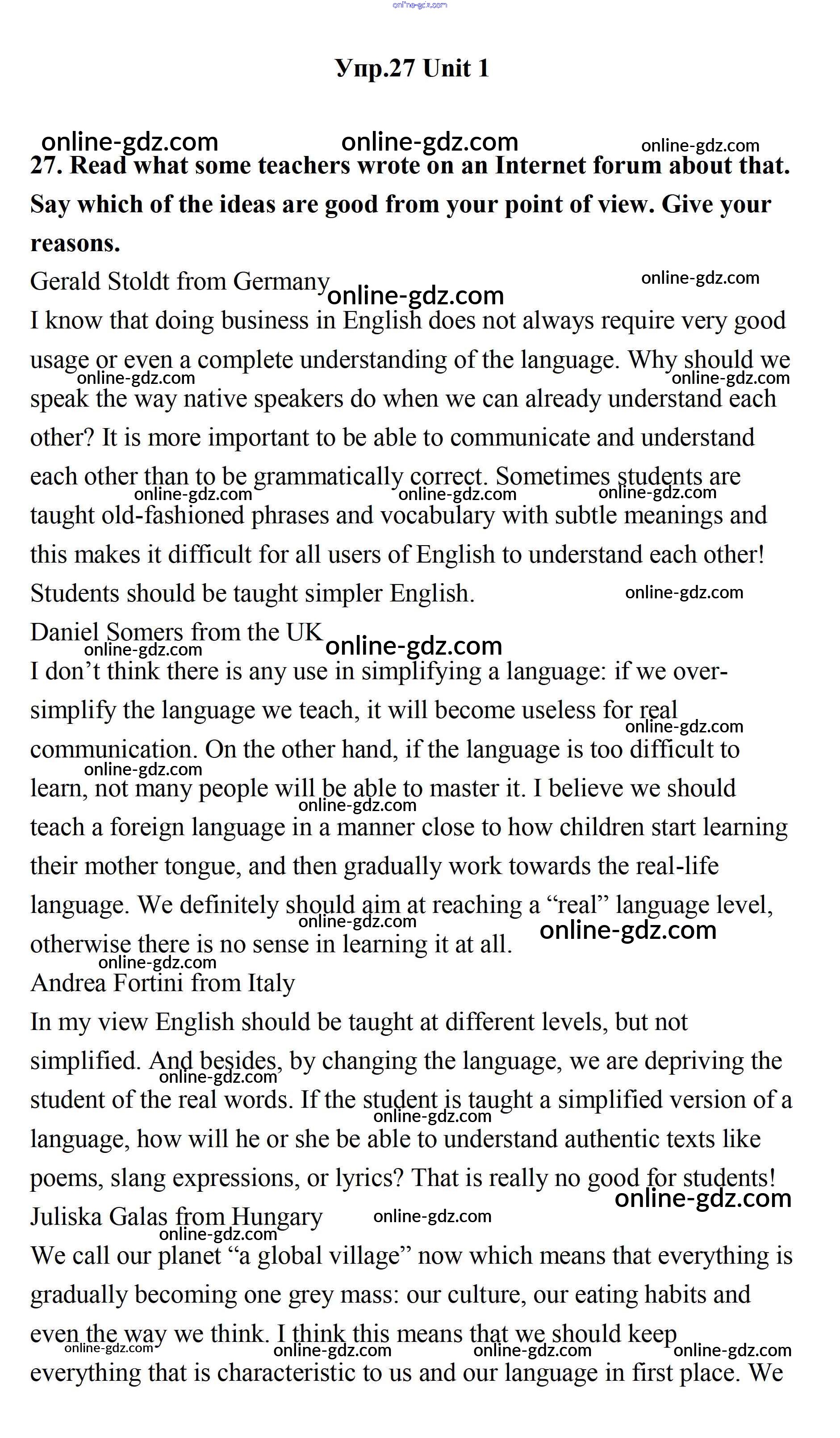Готовые домашние задания по Английскому языку за 11 класс Учебник Биболетова, Бабушис Enjoy English 2017 - Unit 1. Young People in Society 27